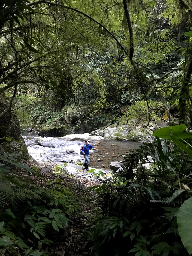 影片:第一段過溪的後段,Mario有稍微滑了一下,而Kim在過溪時很明顯腳也滑了一下,因為溪底的石頭都有青苔很滑。