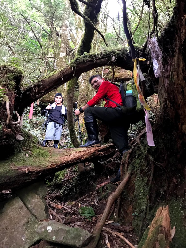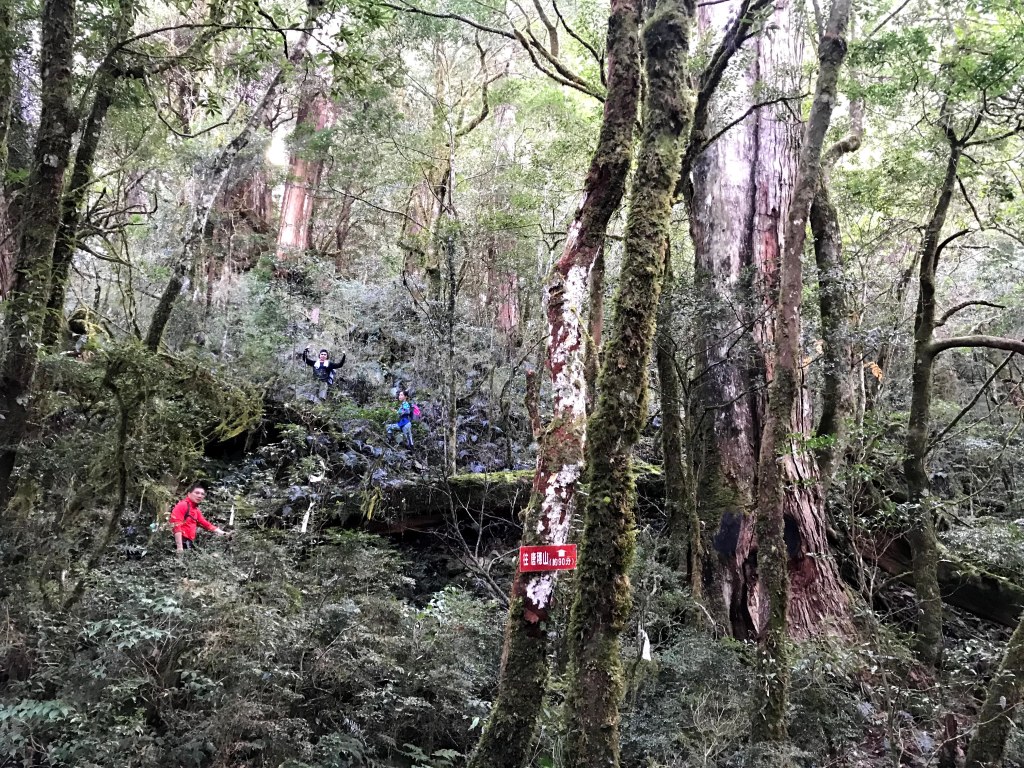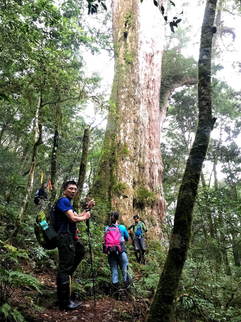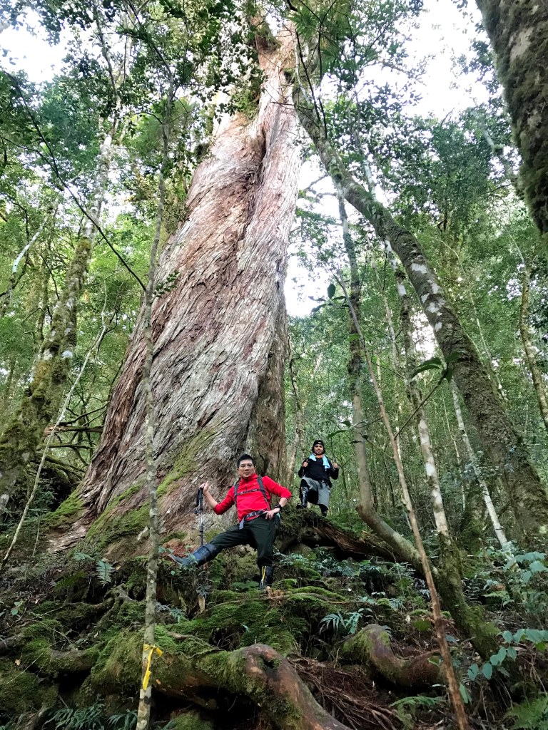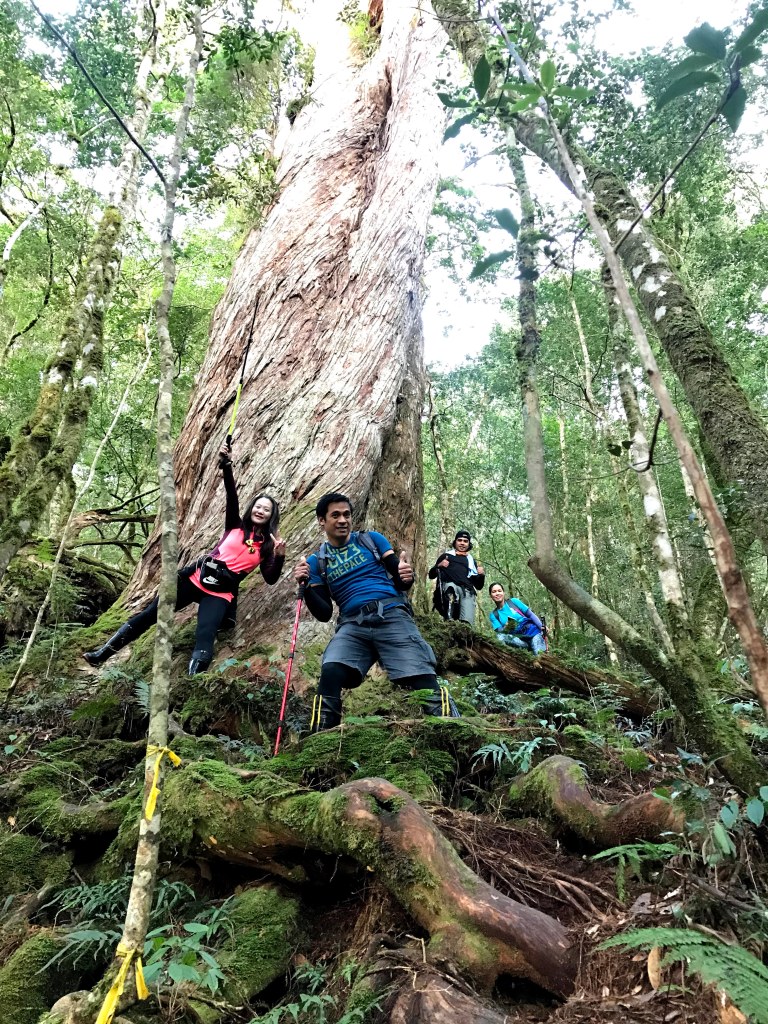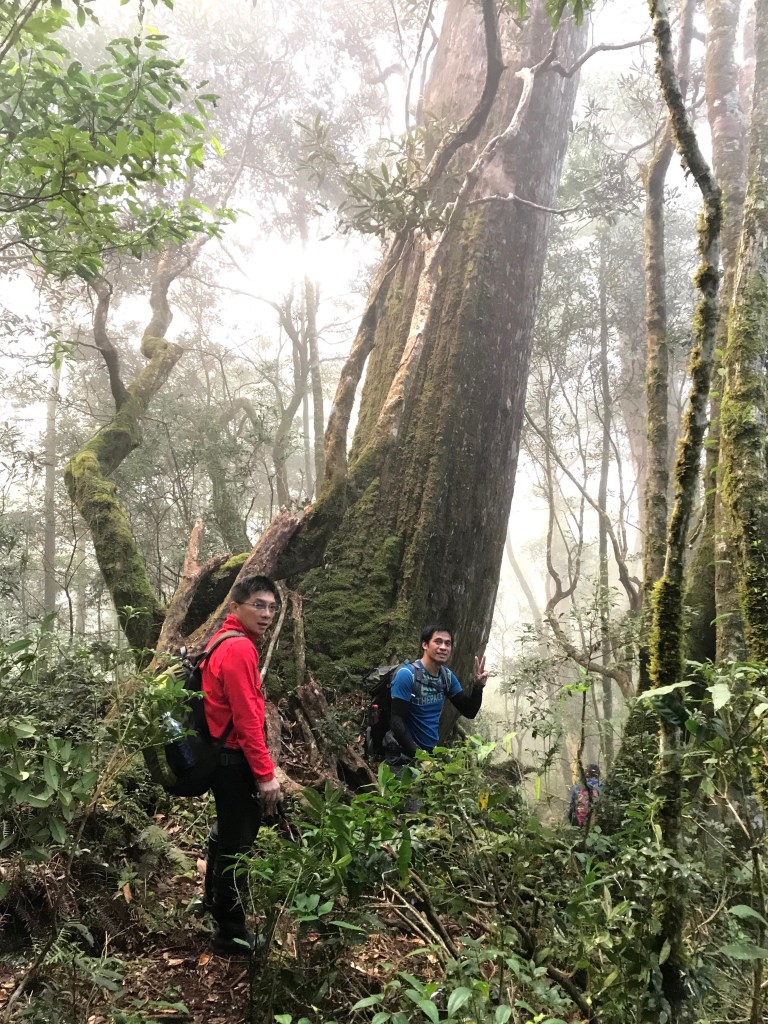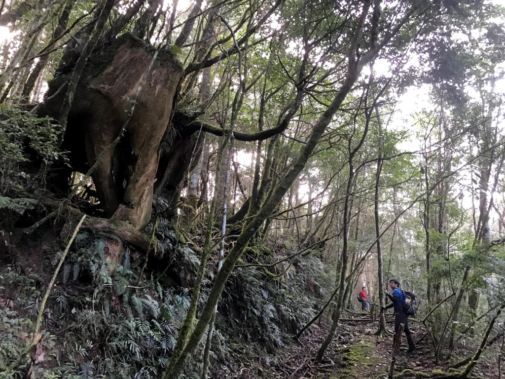 走到總里程約第5km時,開始進入到神木區。 當然,這時所有人都暫時忘記要繼續趕路,拍照、讚嘆之聲不絕於耳,剛剛陡上的累好像不見了。此處,代表性的神木有孿生巨木、螺旋巨木等。神木區位於海拔1600m~1800m,總里程第4.8km~5.5km的位置上。