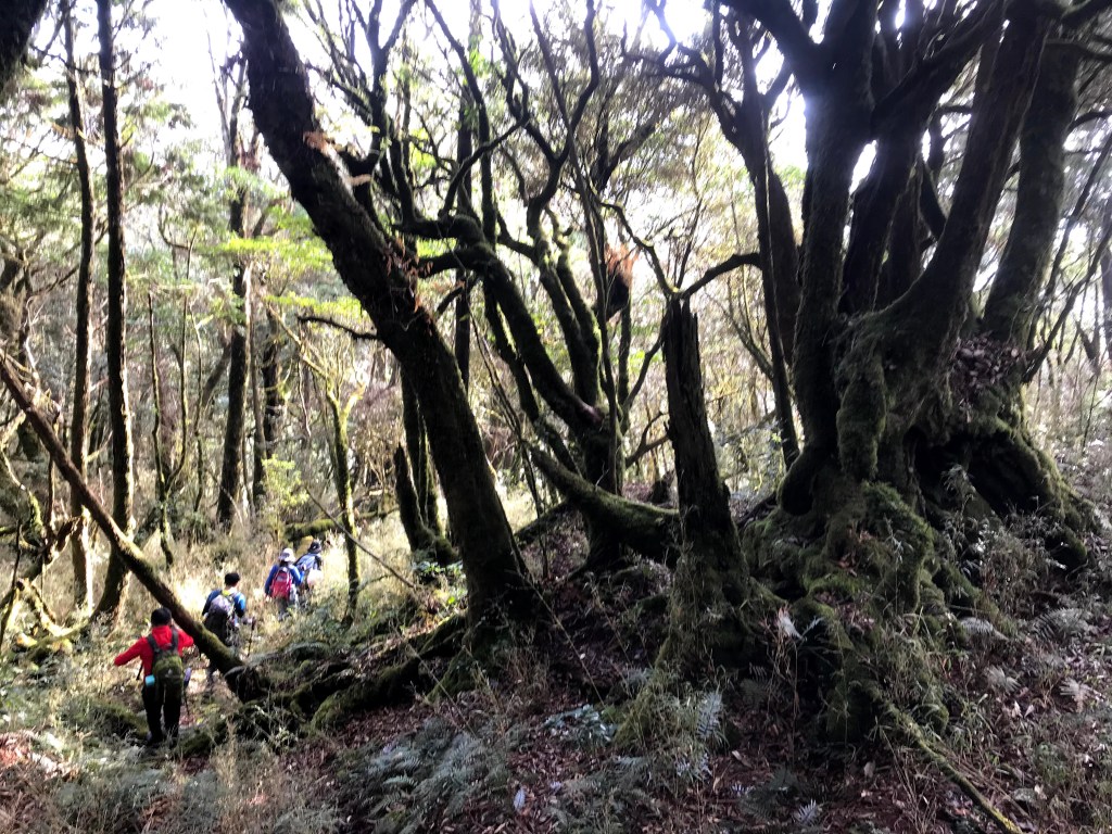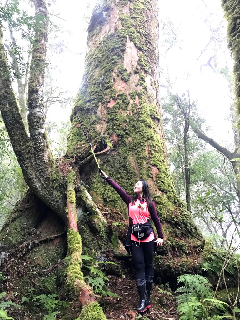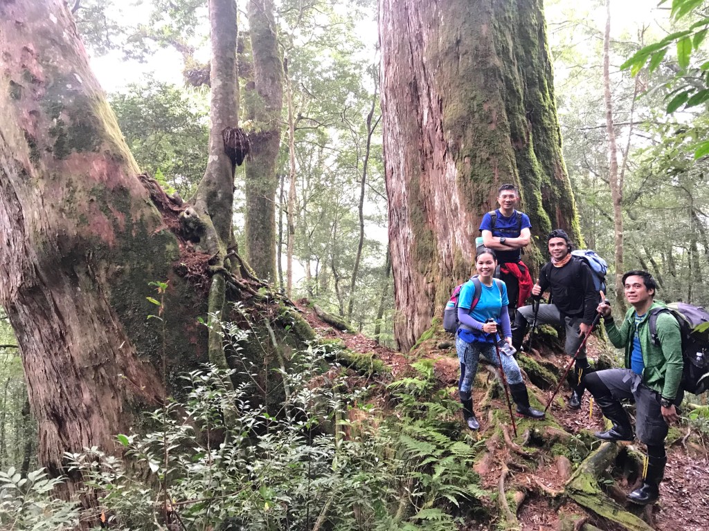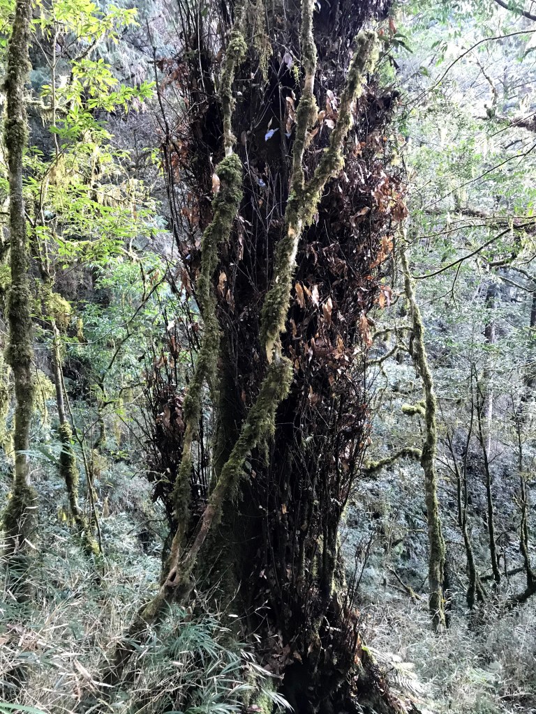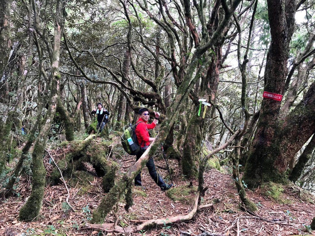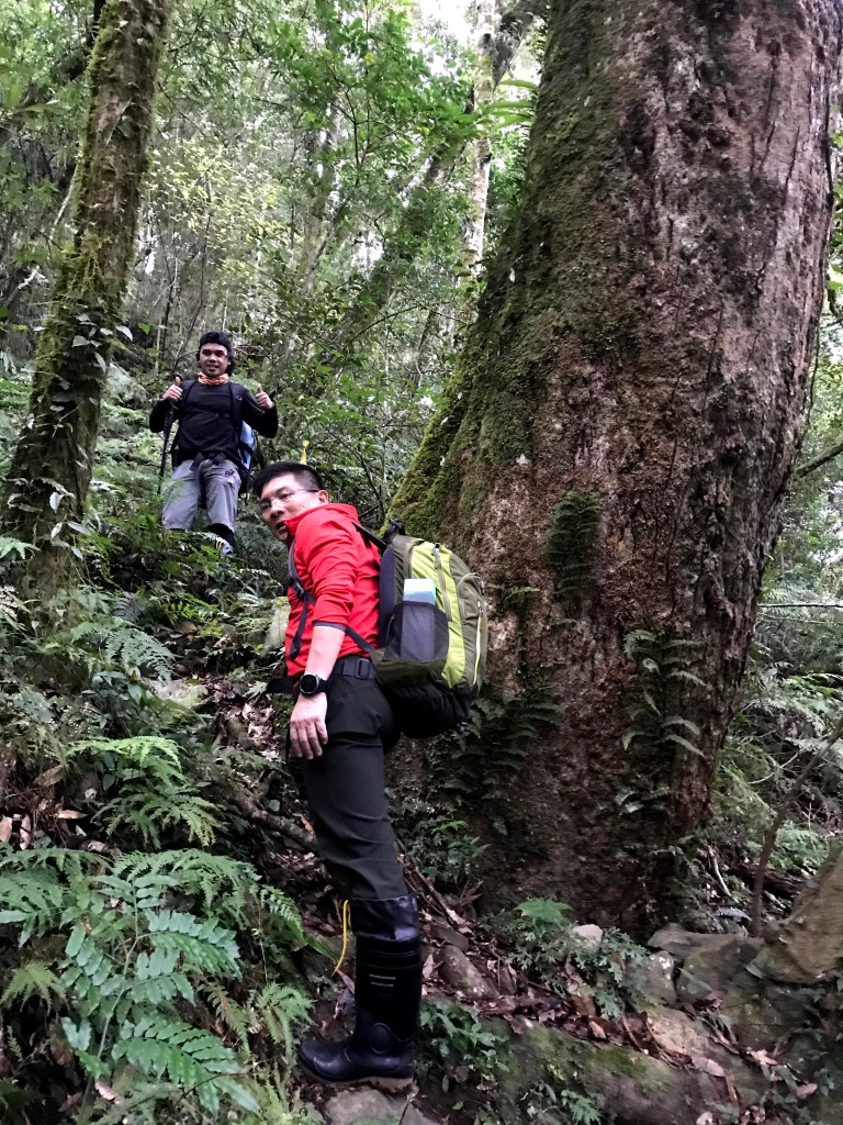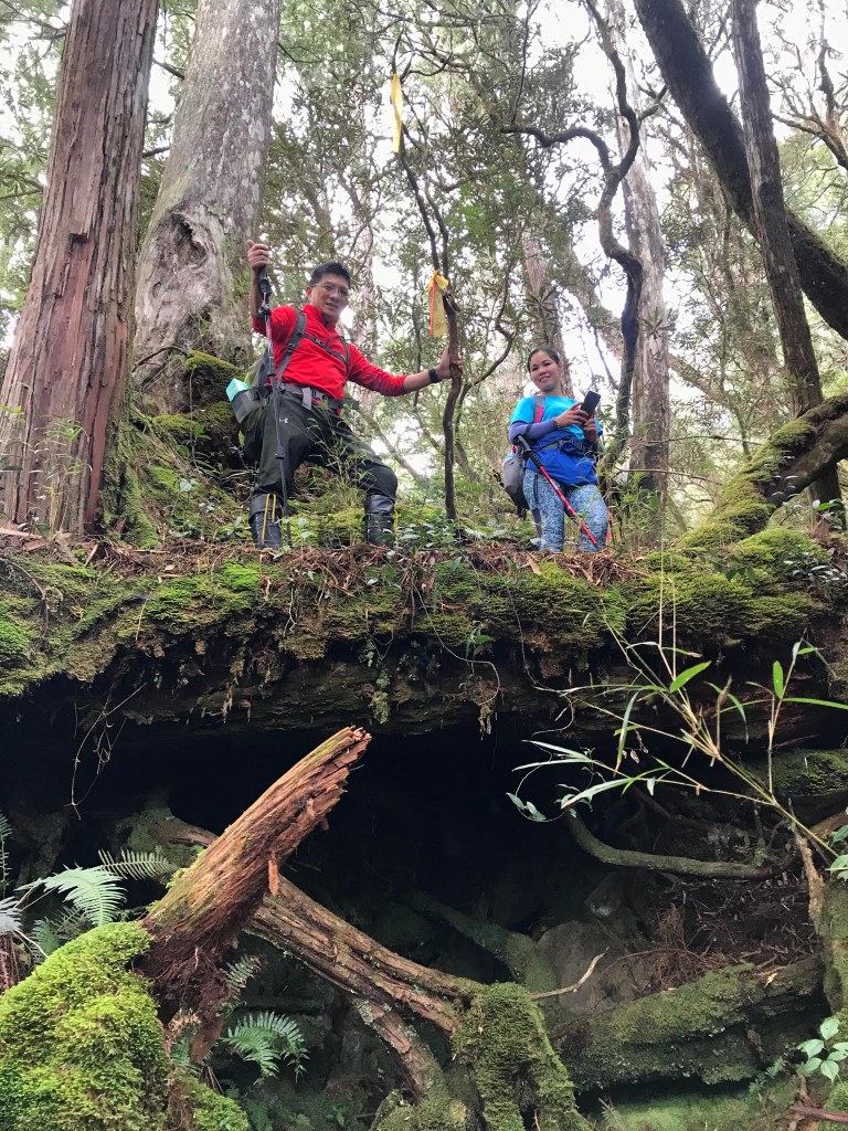 走到總里程約第5km時,開始進入到神木區。 當然,這時所有人都暫時忘記要繼續趕路,拍照、讚嘆之聲不絕於耳,剛剛陡上的累好像不見了。此處,代表性的神木有孿生巨木、螺旋巨木等。神木區位於海拔1600m~1800m,總里程第4.8km~5.5km的位置上。