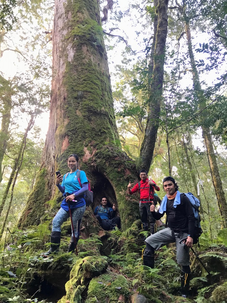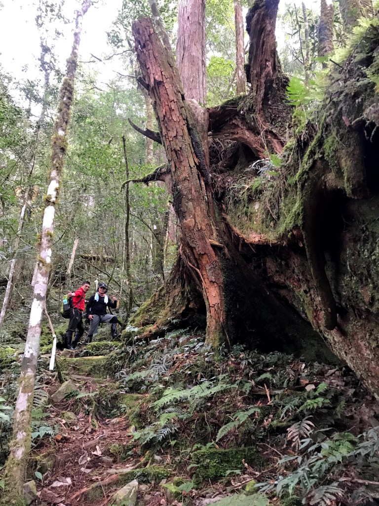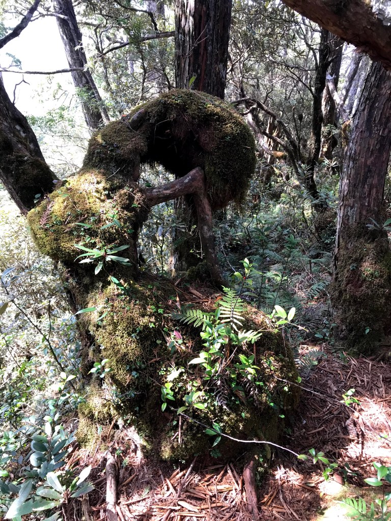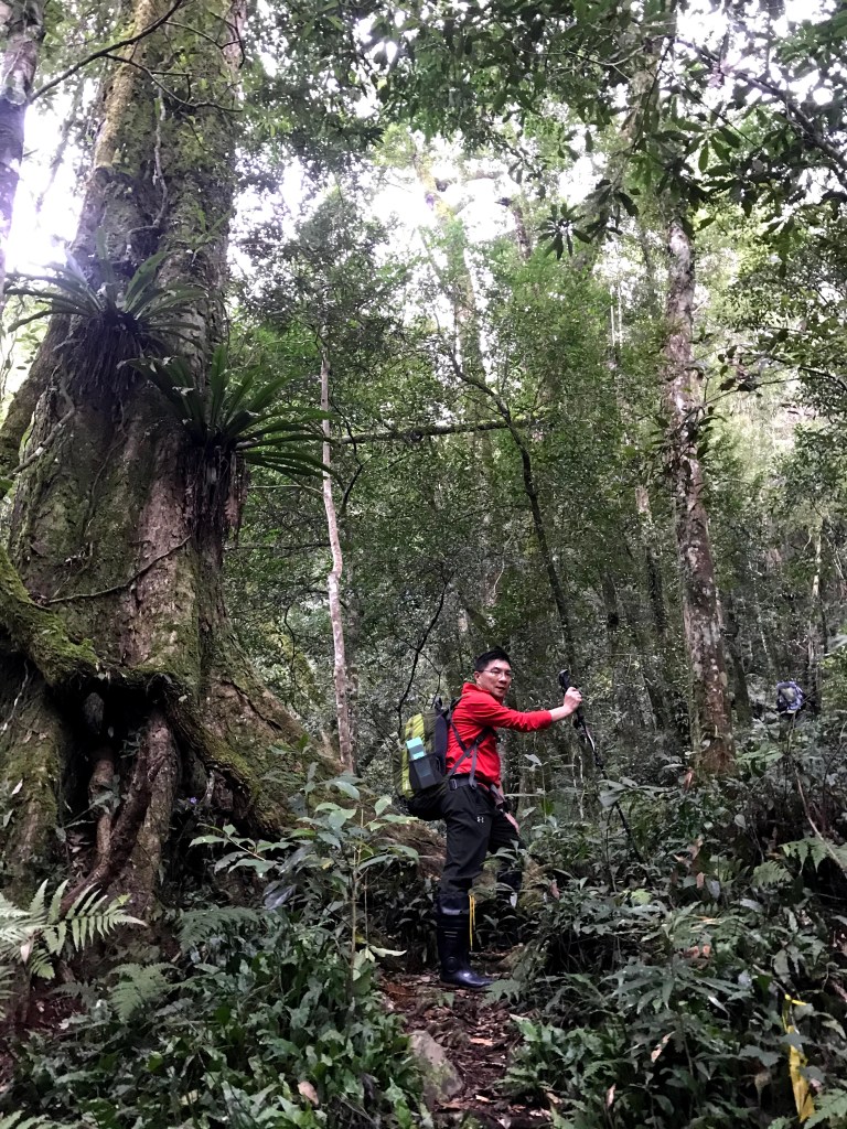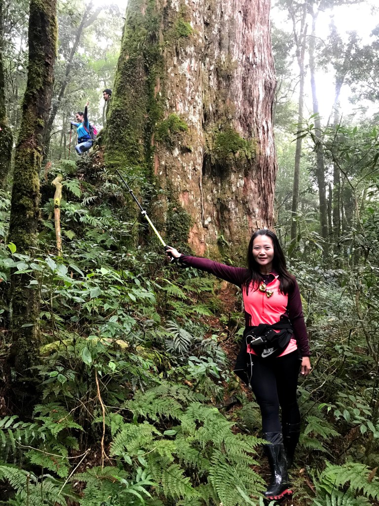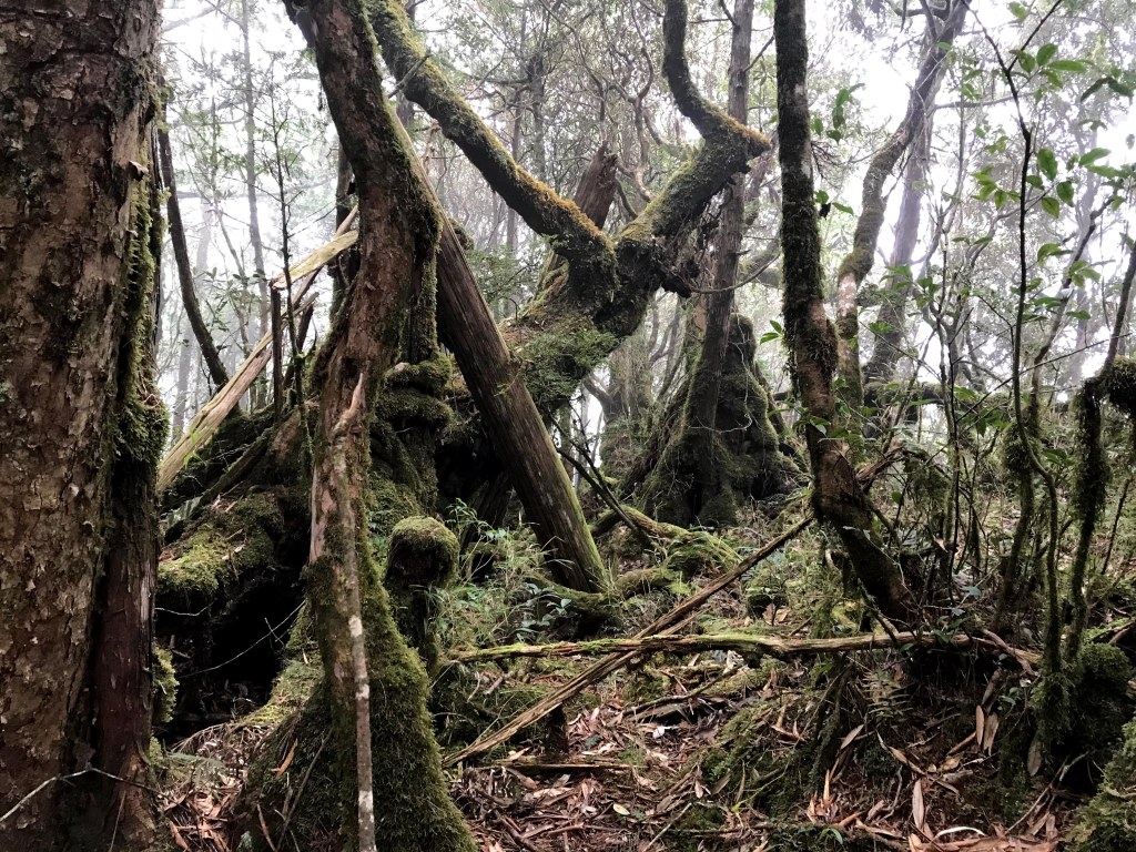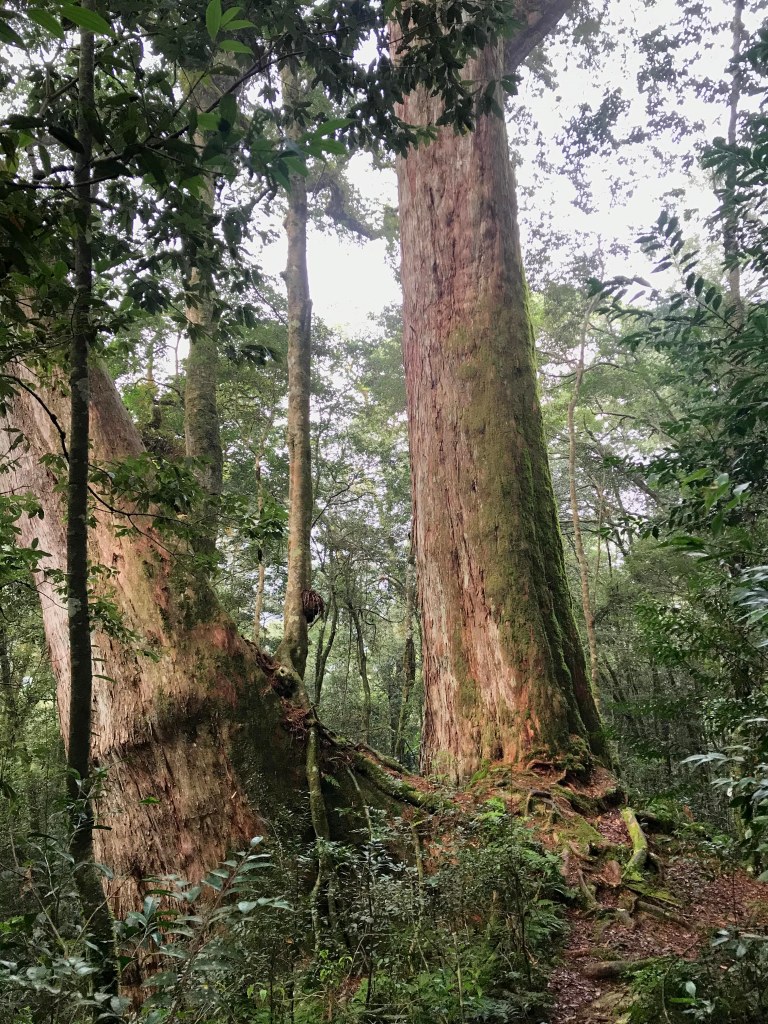 走到總里程約第5km時,開始進入到神木區。 當然,這時所有人都暫時忘記要繼續趕路,拍照、讚嘆之聲不絕於耳,剛剛陡上的累好像不見了。此處,代表性的神木有孿生巨木、螺旋巨木等。神木區位於海拔1600m~1800m,總里程第4.8km~5.5km的位置上。