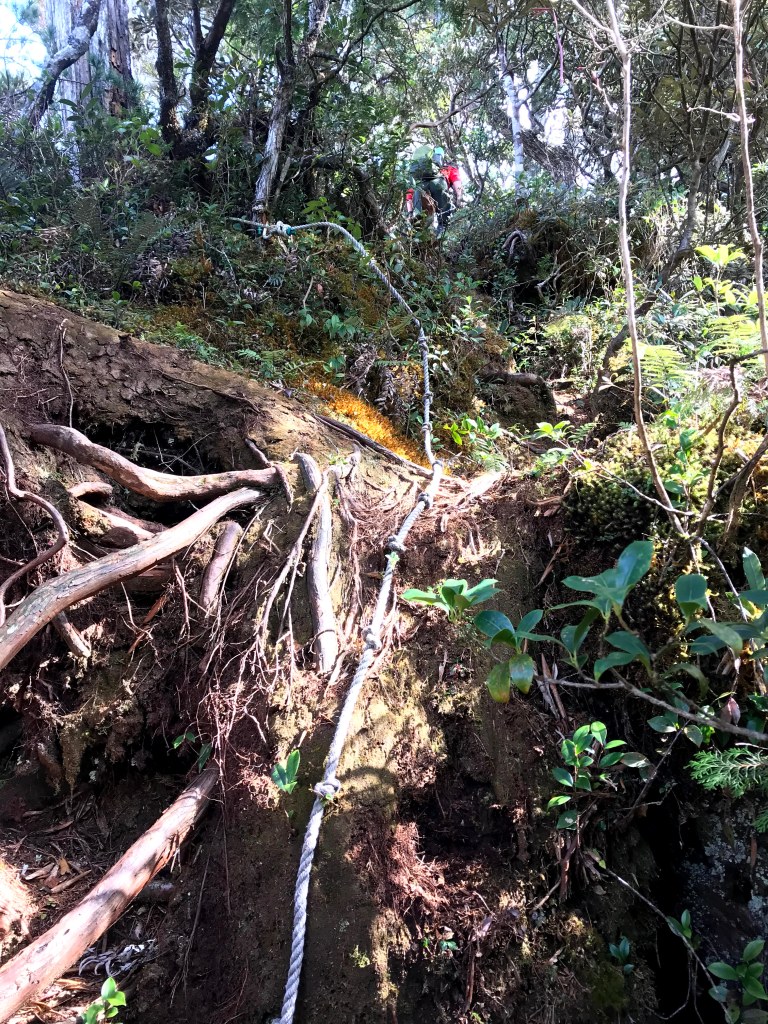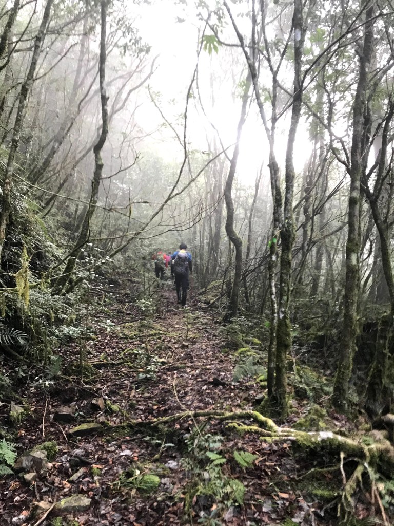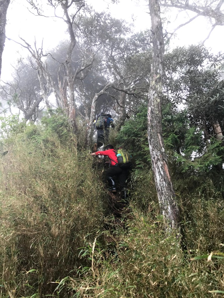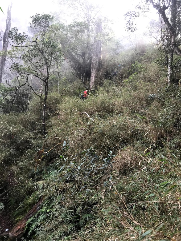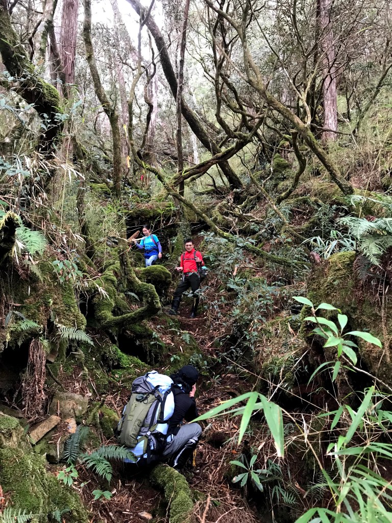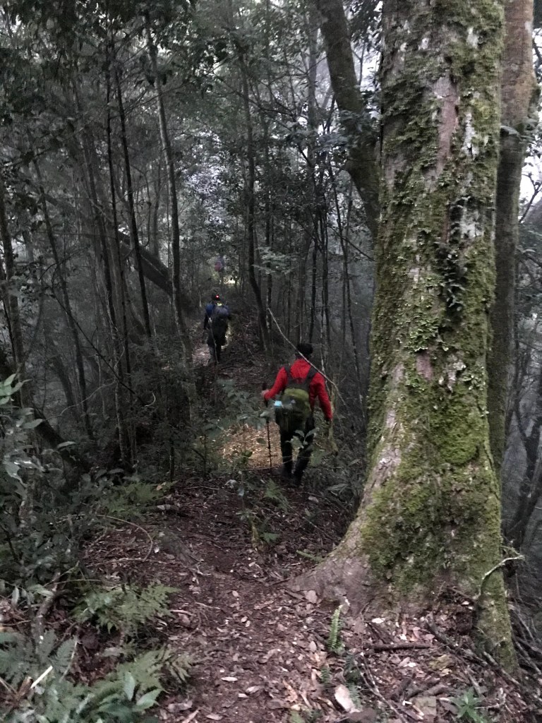 往稜山出發前,我跟Mario說:「我們行程好像又落後了」,等會除了要注意安全外,就帶領我們衝吧!看過其他山友的資料裡,這一段路要走上約4小時,如果這麼慢到稜山,摸黑後更不好走可就要走到半夜了。