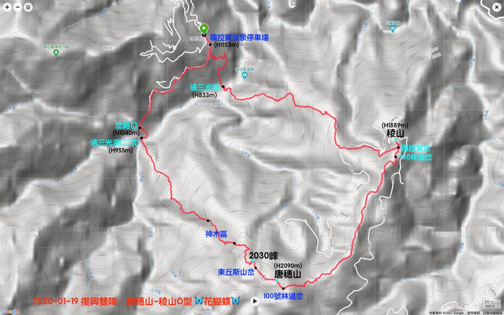 05:50 出發(H1150m,總里程第0.0km)。唐稜O型,預估要15小時完成,因此,冬天爬復興雙障相對不利,晝短夜長,早上快6點仍是漆黑一片。可以預期,回來時,也是漆黑一片。