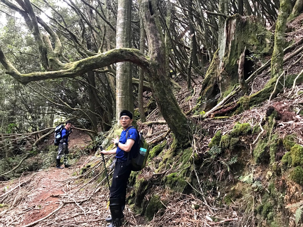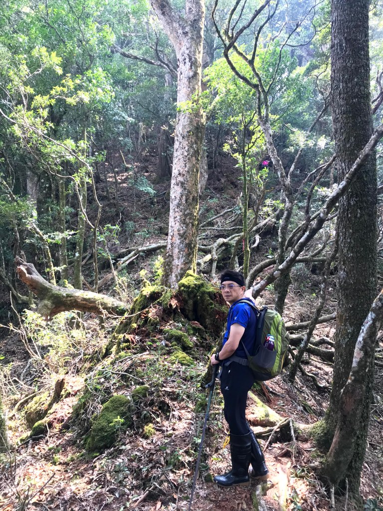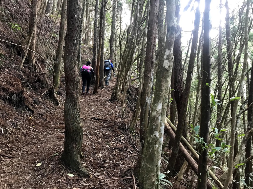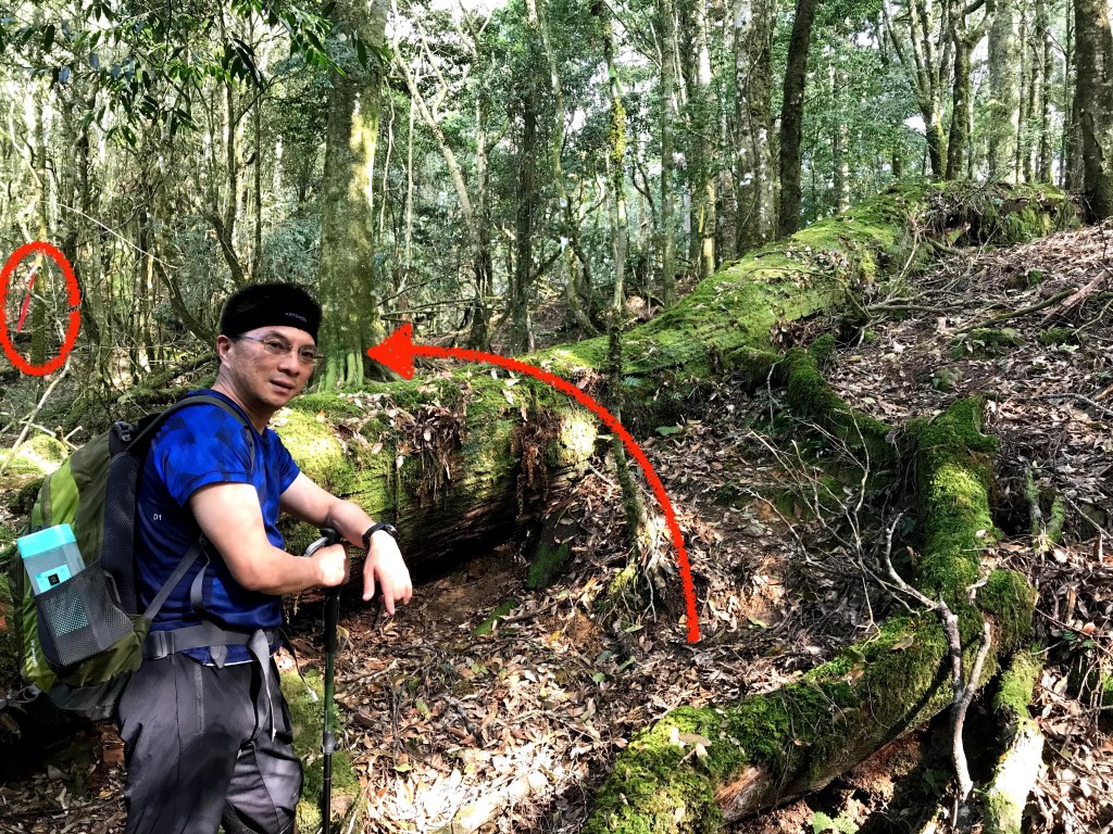 其實,在走錯的這段路上,事後查證幾個APP,像是Maps.me、Hikingbook、Gaia GPS等,都不存在有這一條路徑的軌跡在。當我驚覺到不對時,當下,我的腦海裡曾有閃過將錯就錯的想法,因為,已經幾乎快要接上霞喀羅古道(參考我們2020-12-17 霞喀羅古道+石鹿大山:全程一日縱走 🦋花蝴蝶🦋的文章)了,不如就從古道下山,知道走得不遠就可以到達清鹿道路,但不知道要走多遠才能叫到車,載我們回到羅山分站。算了,沒有把握,還是走回到麥巴來山。