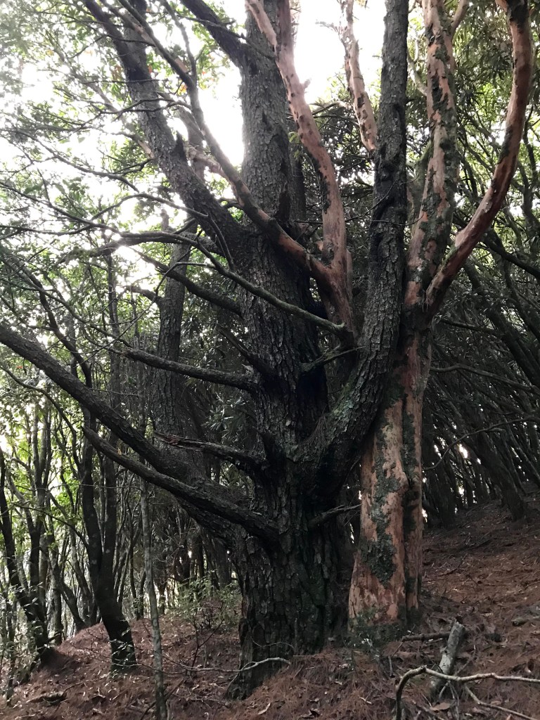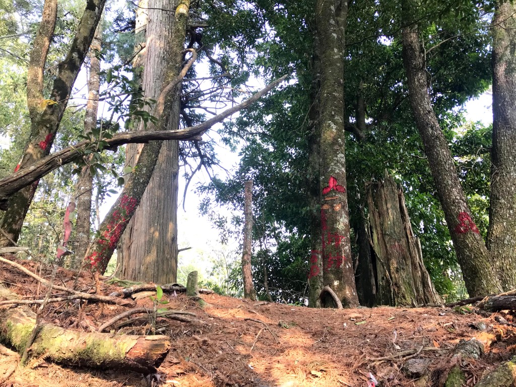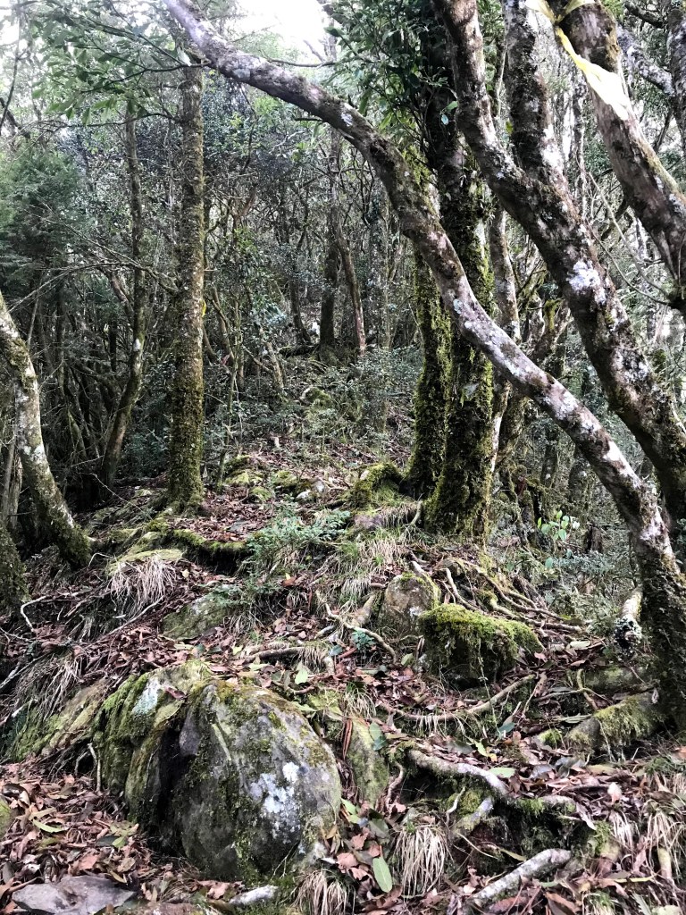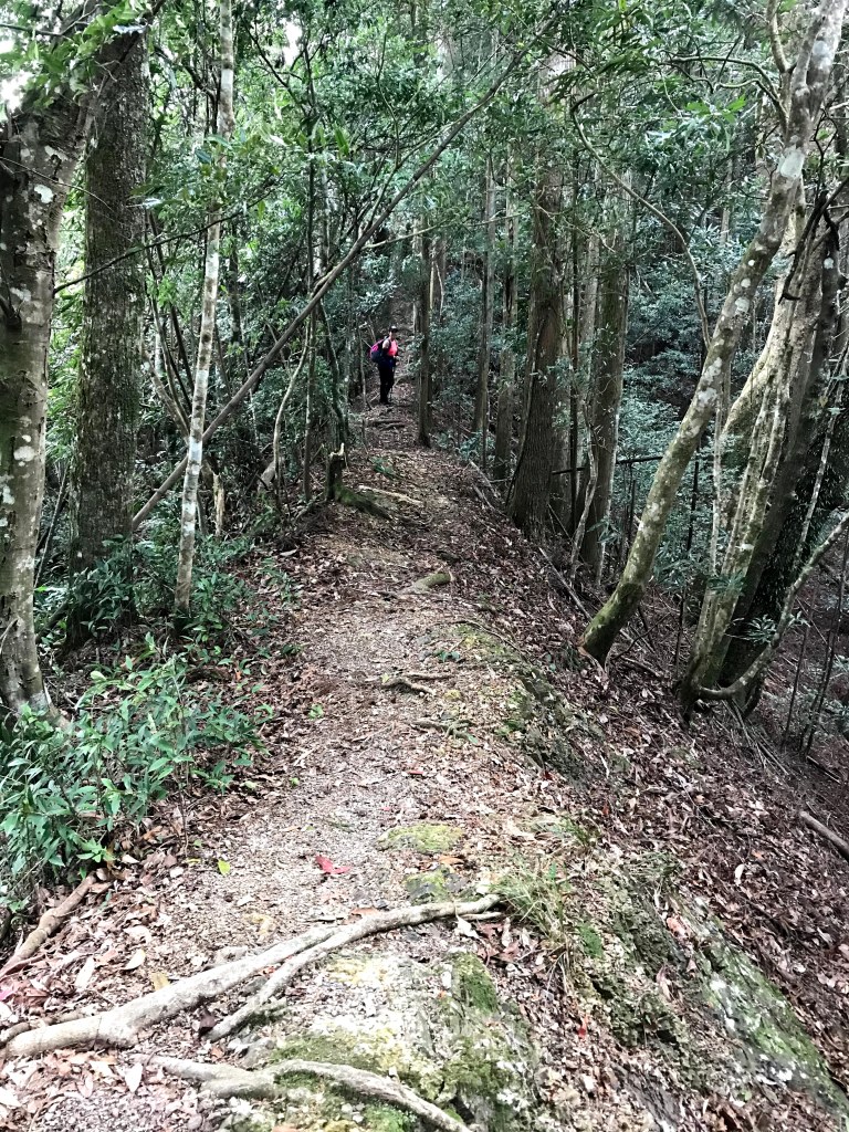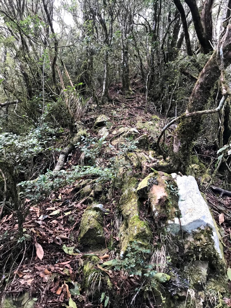其實,在走錯的這段路上,事後查證幾個APP,像是Maps.me、Hikingbook、Gaia GPS等,都不存在有這一條路徑的軌跡在。當我驚覺到不對時,當下,我的腦海裡曾有閃過將錯就錯的想法,因為,已經幾乎快要接上霞喀羅古道(參考我們2020-12-17 霞喀羅古道+石鹿大山:全程一日縱走 🦋花蝴蝶🦋的文章)了,不如就從古道下山,知道走得不遠就可以到達清鹿道路,但不知道要走多遠才能叫到車,載我們回到羅山分站。算了,沒有把握,還是走回到麥巴來山。