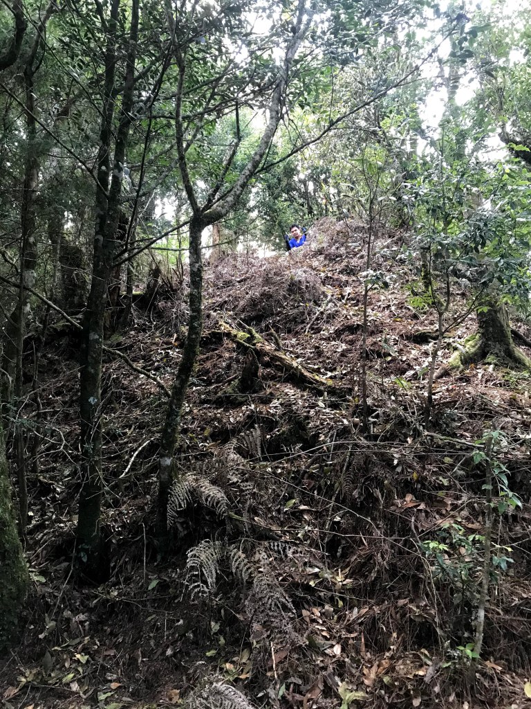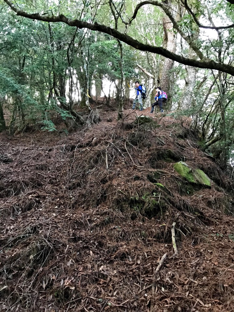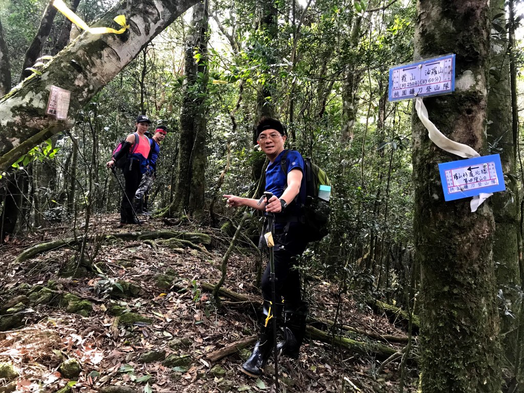 離開油羅山三角點200m後,遇岔路,往左可至羅山林道北線第三登山口,不取,往右即往霞山,繼續前行約900m,即可到1818峰,但因為沒有路標指示,大夥不知不覺就在陡下再陡上之間走過了。