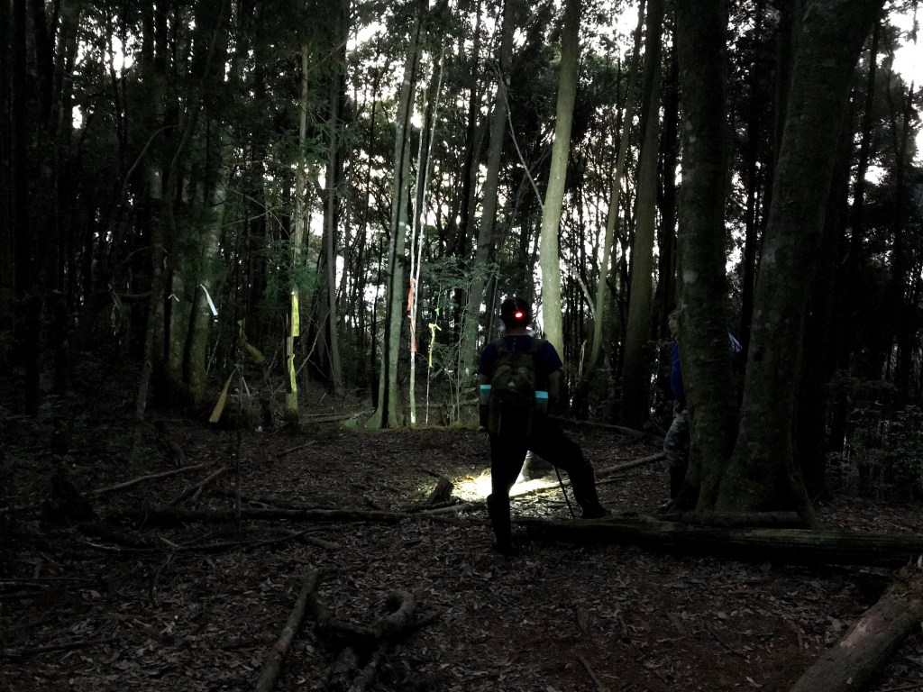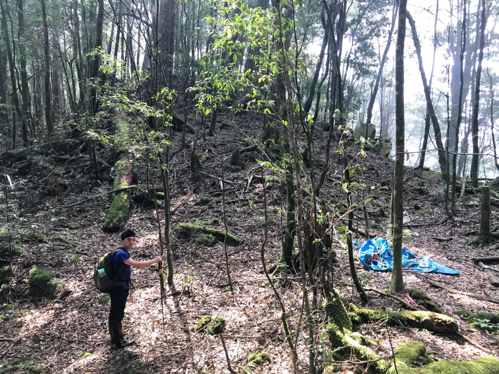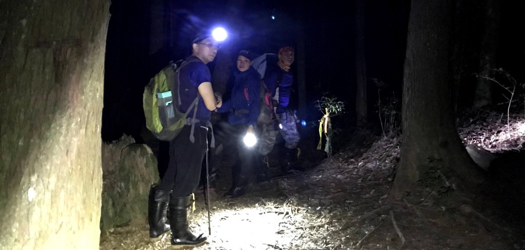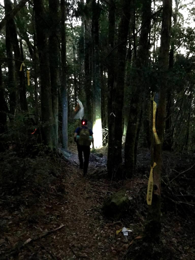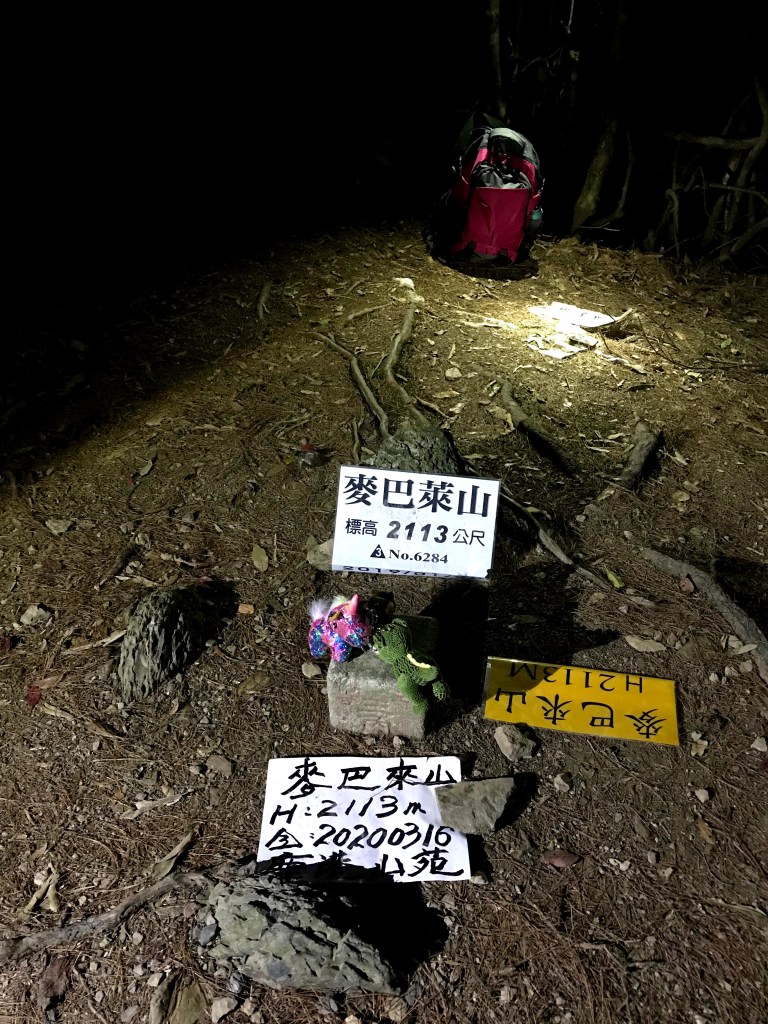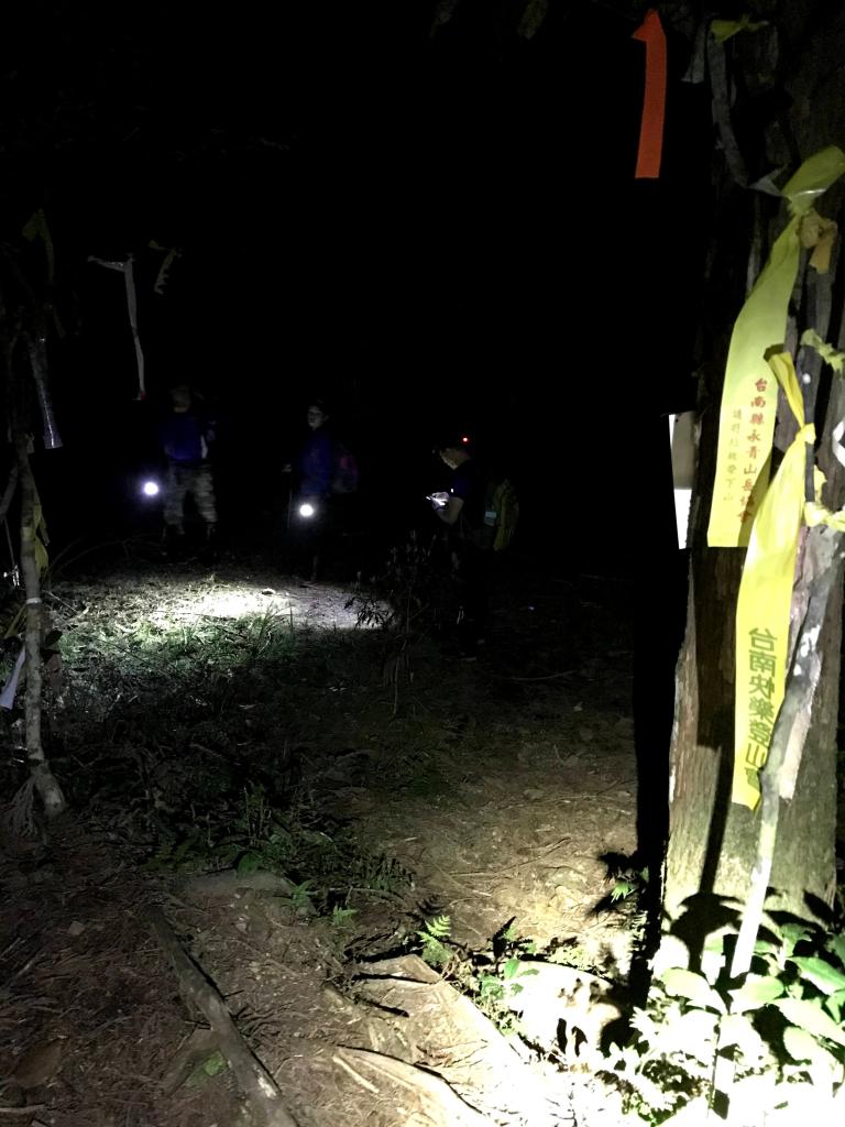 每個三角點都要待上20分鐘,再加上特定的視野、樹木與隊友的行進過程都要拍,即使到了麥巴來山都已經晚上6點多了,還是要大家把燈光架好,好好給她拍一些照片並錄影,實際上耗在這部分的時間真是不少。