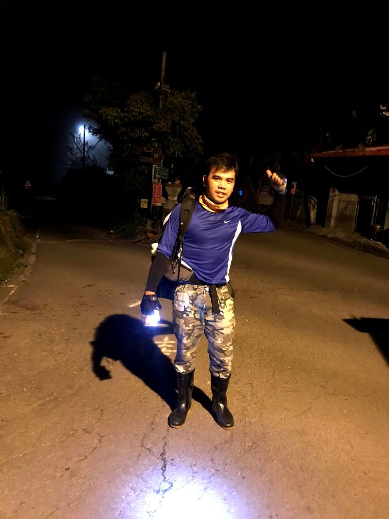 在麥巴來山拍照攝影至18:51。從麥巴來山到農改場需要5km,之前Smile與我來過,這一段下山的路,上一次在白天用了1.5小時,但今天,天色已黑,我預計需要兩小時才能抵達農改場門口。再加上,中途會經過麥巴來西北峰,再拍一下三角點,一定會超過兩小時。
