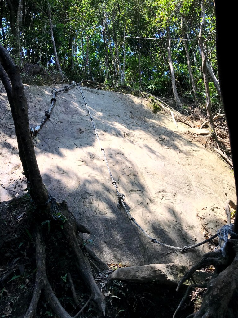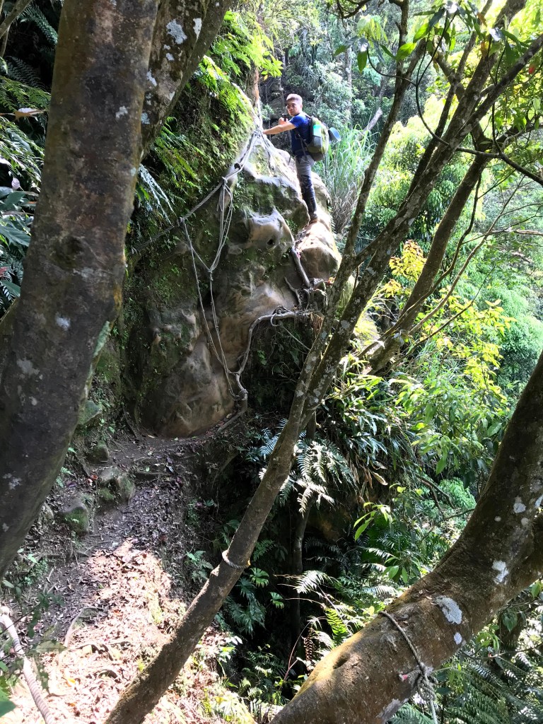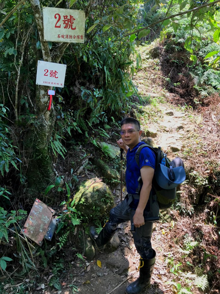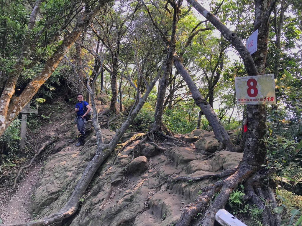 筆架連峰,一般是設定在6小時的時間,因此,頭尾兩邊都有警告的告示牌,要求山友在下午2點後別再入山。整個路徑中有石碇消防分隊製作的編號1至10號地點,應該是手機訊號較佳的位置,可以作為急難救助的通信使用。