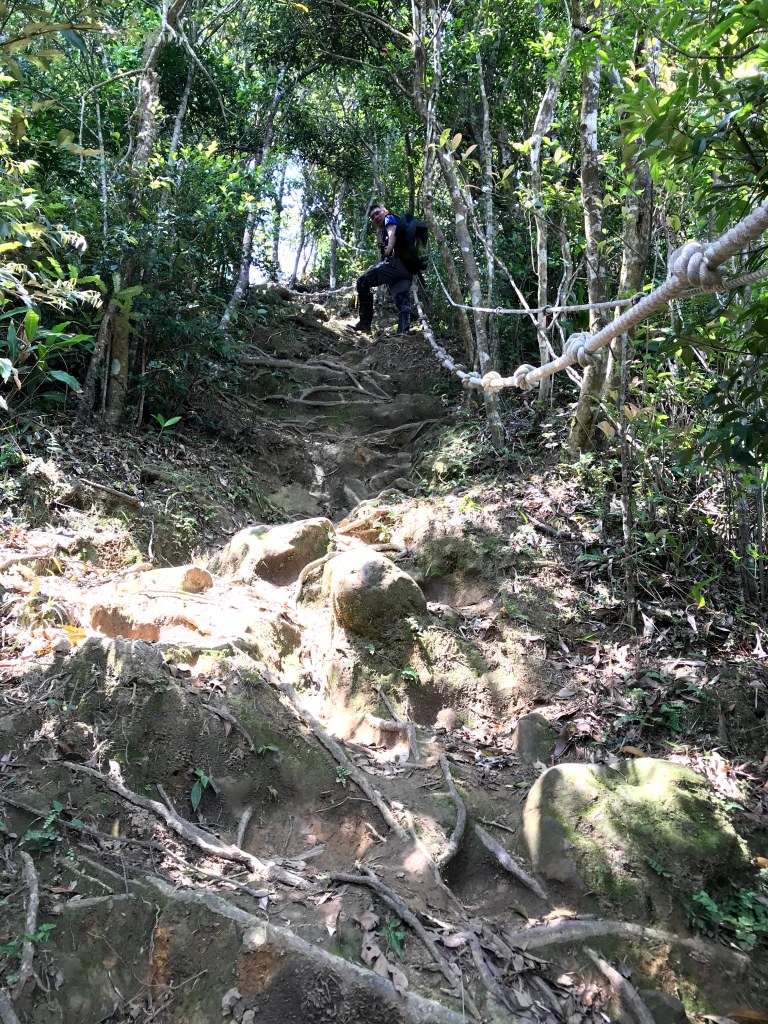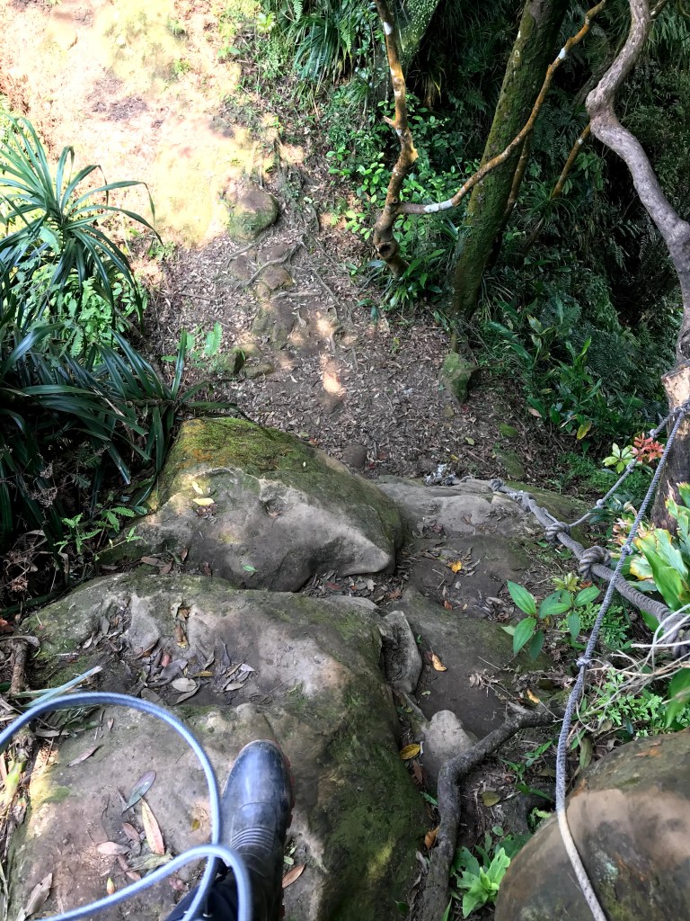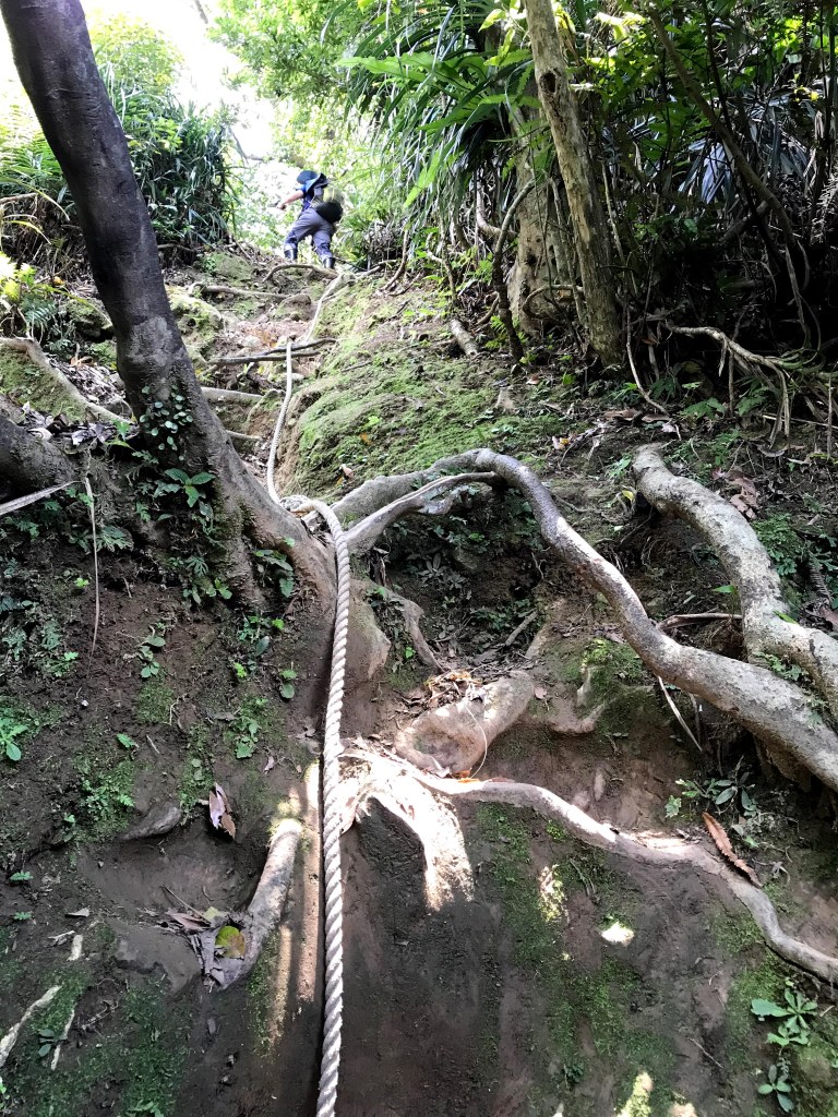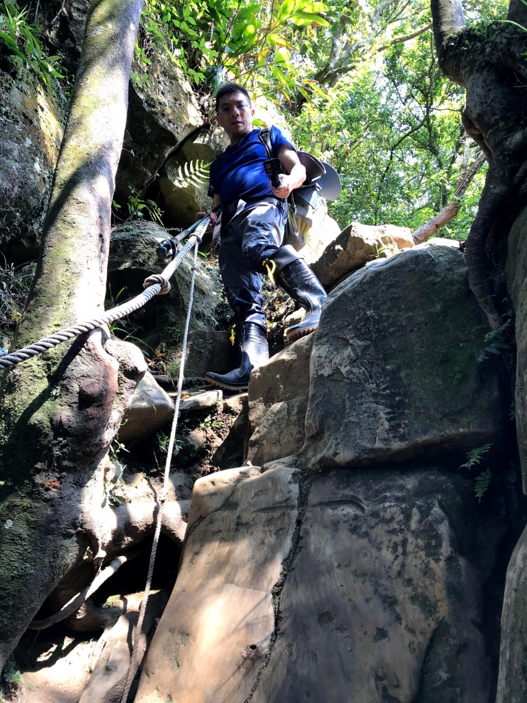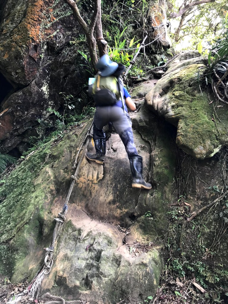 筆架連峰,一般是設定在6小時的時間,因此,頭尾兩邊都有警告的告示牌,要求山友在下午2點後別再入山。整個路徑中有石碇消防分隊製作的編號1至10號地點,應該是手機訊號較佳的位置,可以作為急難救助的通信使用。