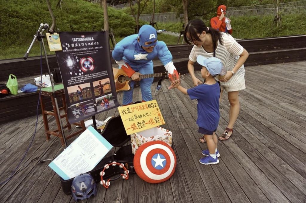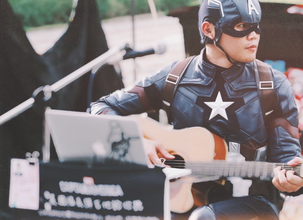 於是,我寫了一封信給伊甸基金會,告訴它們我希望能穿著代表正義感的美國隊長裝走進街頭,以吉他彈唱的方式為需要幫助的人募款。這樣除了能幫助他人外,也能與人群摩擦生熱,讓大家感受愛的無所不在。後來,我不再執著於當警察,也不再為當不成調查員而落寞,因為我可以當一輩子的美國隊長,來延續自己的理念與價值。