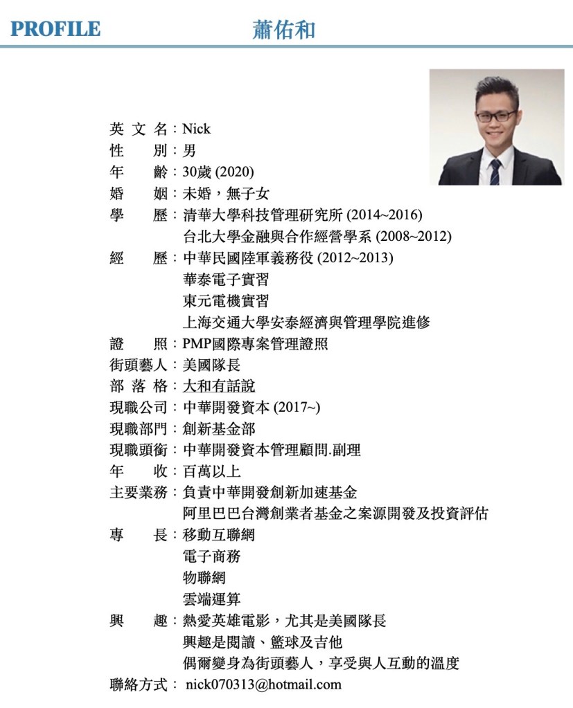 要貼切的認識一個人,而且還要描繪出其心路歷程,實非只以文字三言兩語就可以完成。我們佑和,有著188cm旱地拔蔥的身材,但個性溫和,不卑不亢,眼神與行動中總透露出自信與果決,位居目前的創投資金審核者甚是恰當。朋友有很多種,如果需要一位有正義感、熱於分享、為了目標理想會義無反顧的投入者,那佑和就是這樣的人。