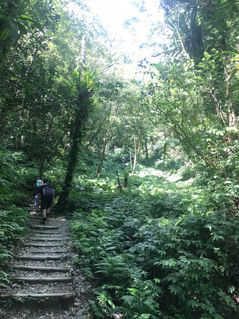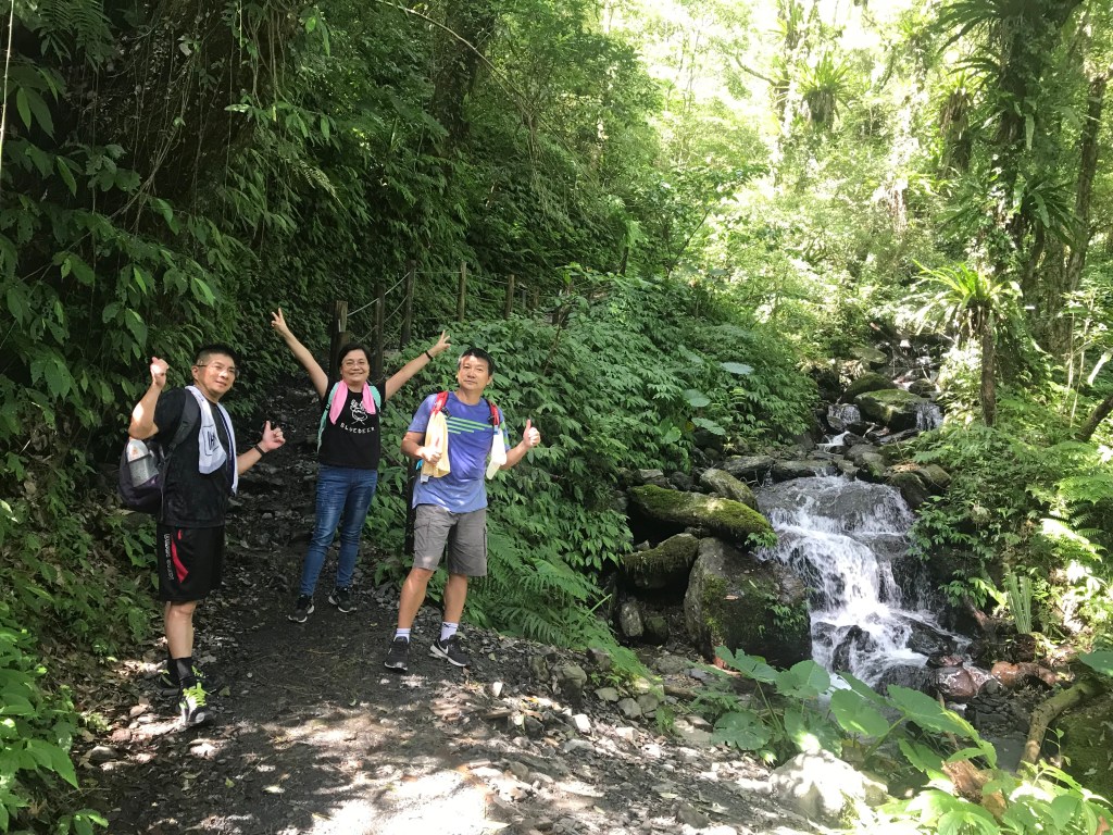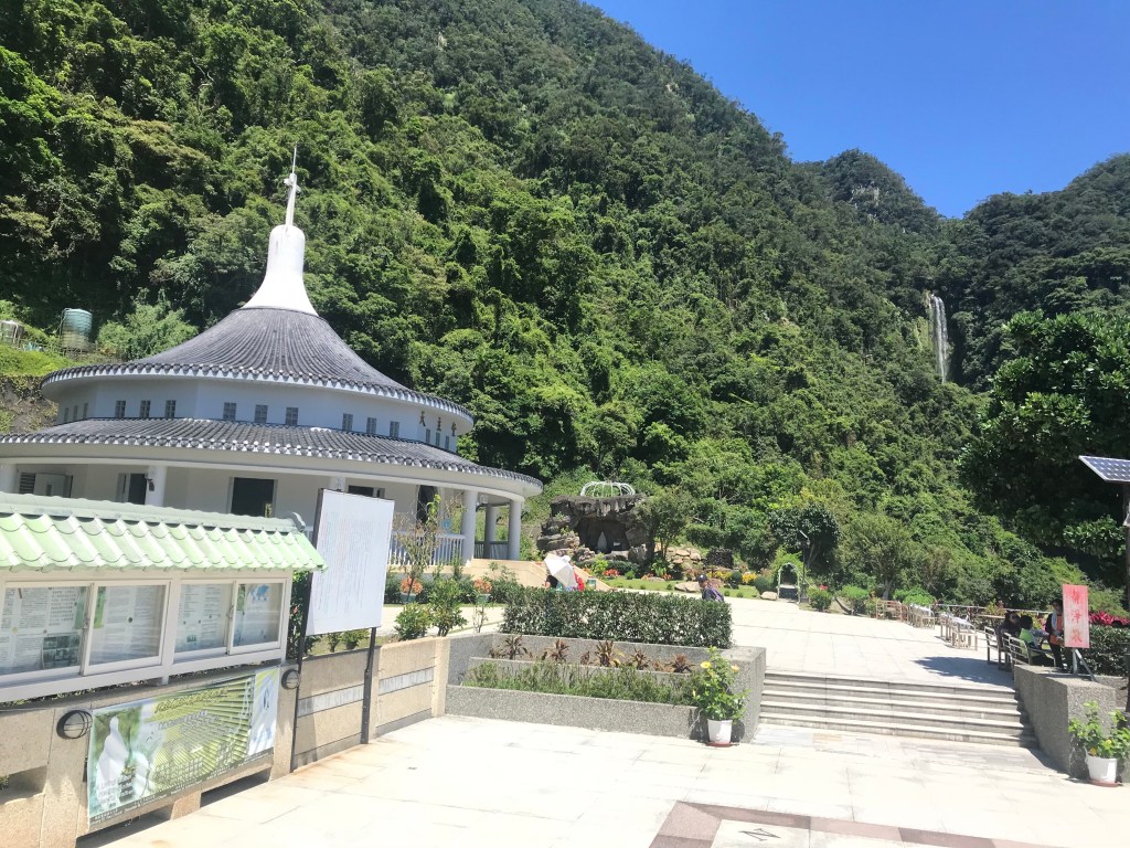 另外,因為從停車場往連絡道的中間,有步道可以連結到五峰旗瀑布,個人的建議是,與其走連絡道1km到達天主堂,不如將此1km的過程挪為轉往五峰旗瀑布,欣賞三段清涼的瀑布渲瀉後,再連上聖母朝聖地,可看到圓頂建築的天主堂,再繼續走連絡道後面的3km。