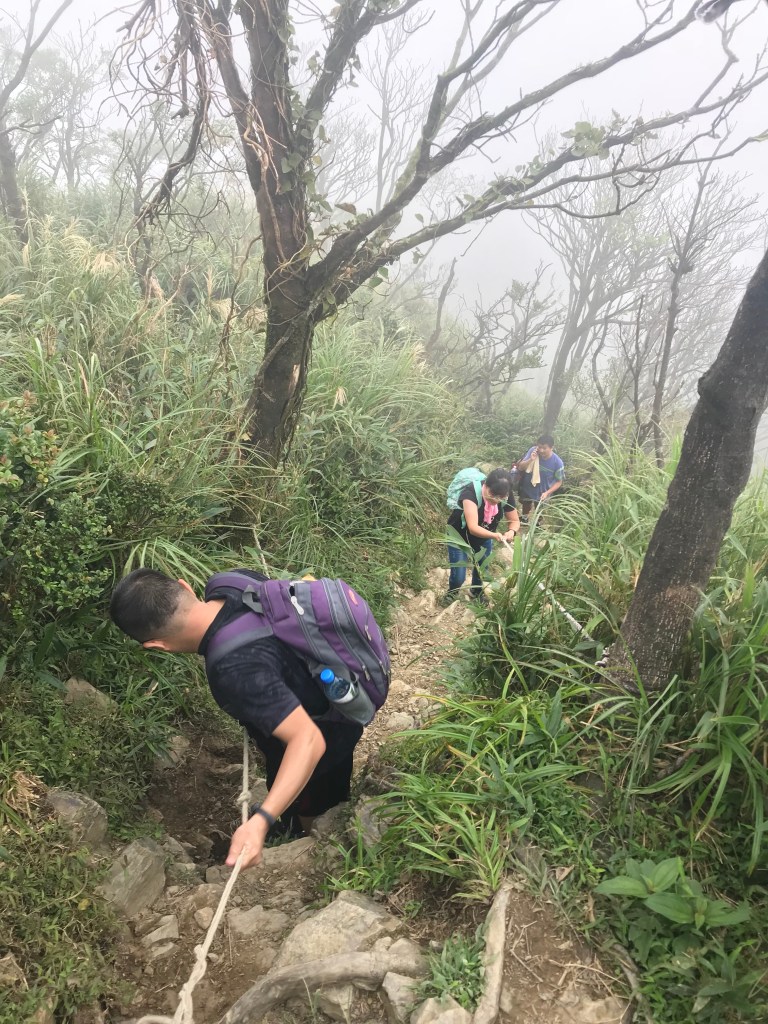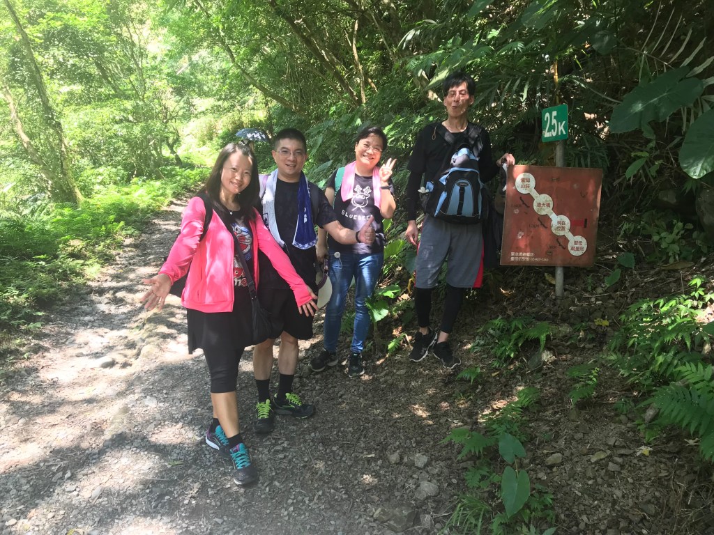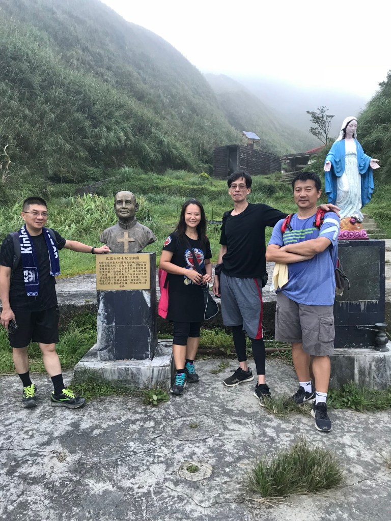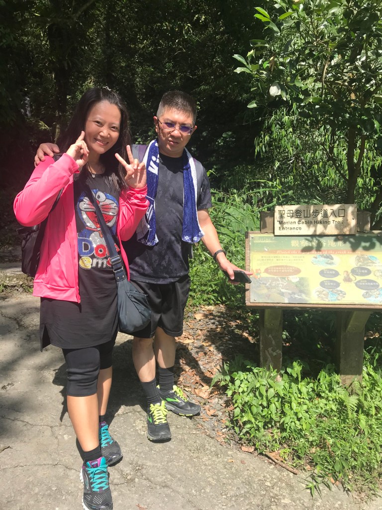 這一天,是我們以前老同學的聚會,大家提議去爬山順便敘敘舊,因而以聖母山莊為目的地。由五峰旗遊客中心停車場起算,走到聖母登山步道連絡道起點約需500m,再由連絡道起點走4km的連絡道可以到達通天橋,過了通天橋後左側有一避難亭可供休息,從此避難亭開始起算就是聖母登山步道的起點,要再走上1.6km可到聖母山莊。
