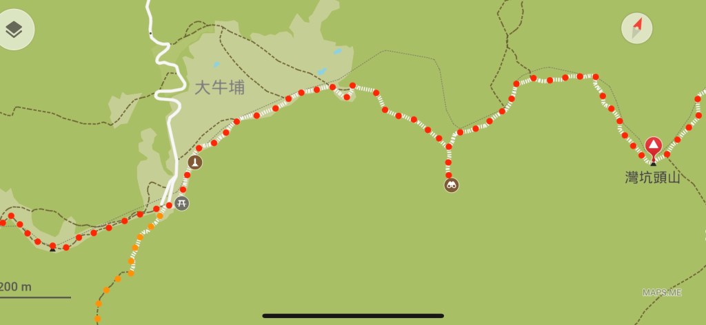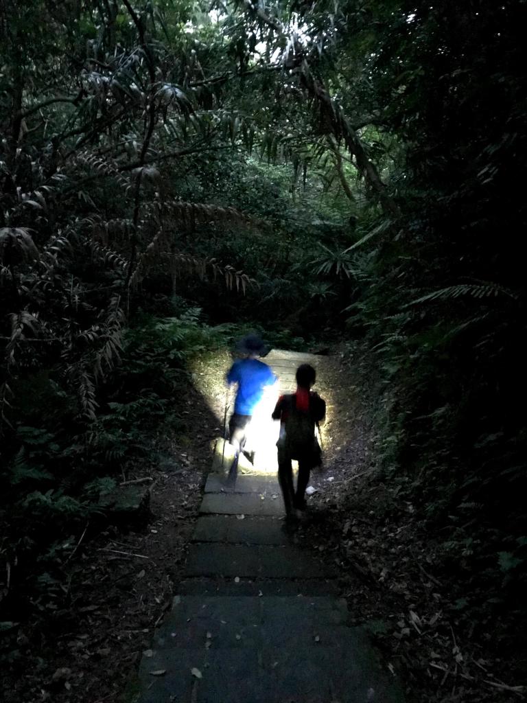 這次共用了快10小時,與上一次只有Smile與我兩人的過程慢了約4小時。因為今天我們有登山的新手,難免會出現,走走停停、臉色慘白、膝蓋疼痛,及大小腿抽筋的現象。也許經過今天的磨練,可以體驗到體能提升的重要。所以,今天出發時,心中就預算著慢慢的走。但也因為慢,反而在下山至大溪路段時,摸黑下居然看到一大堆一閃一閃的螢火蟲!