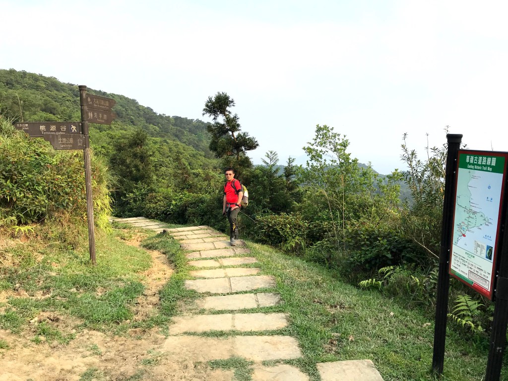 我們今天的路線是到達桃源谷後,繼續往土地公廟方向前進,此部分已經進入桃源谷大溪線,到達土地公廟後,左轉下山,會經過蕃薯寮山,繼續沿著步道續走,即可到達大溪河濱公園,再沿著台2線往南走約900m,就會到達宜蘭大溪車站。難易程度給:中,是因為路途比較遙遠。