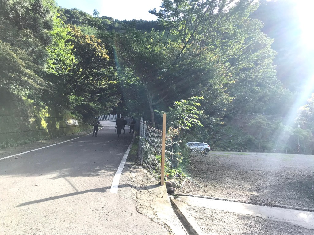 上圖:出第二登山口後,就會看到產業道路上有這樣的鐵柵欄。17:41