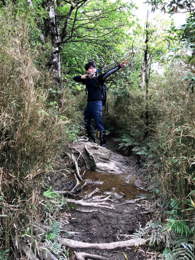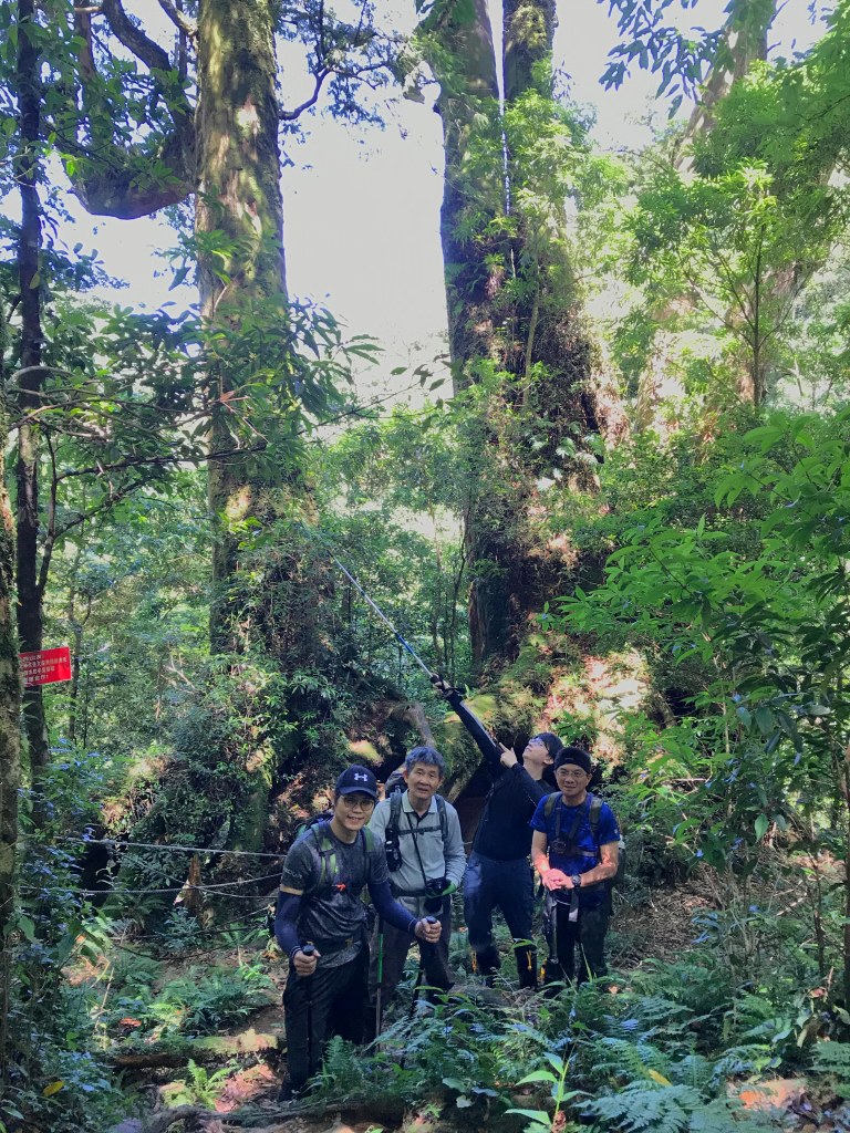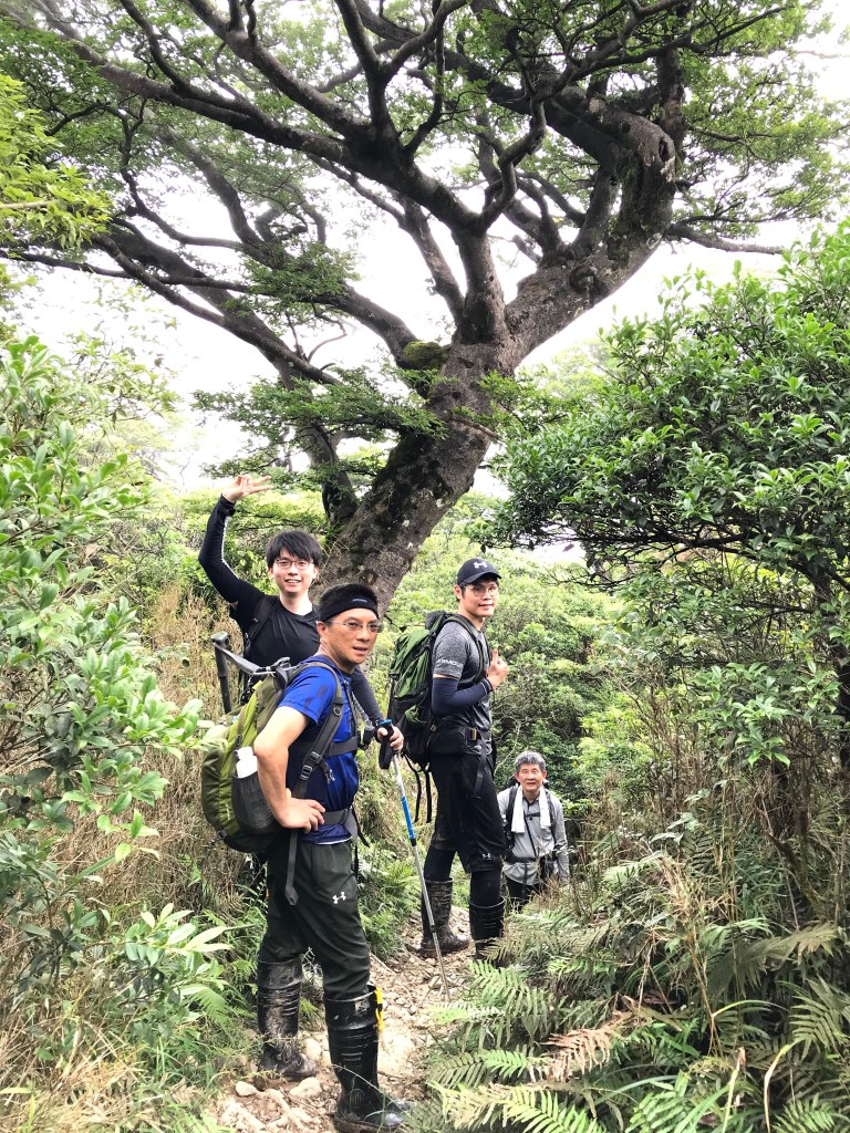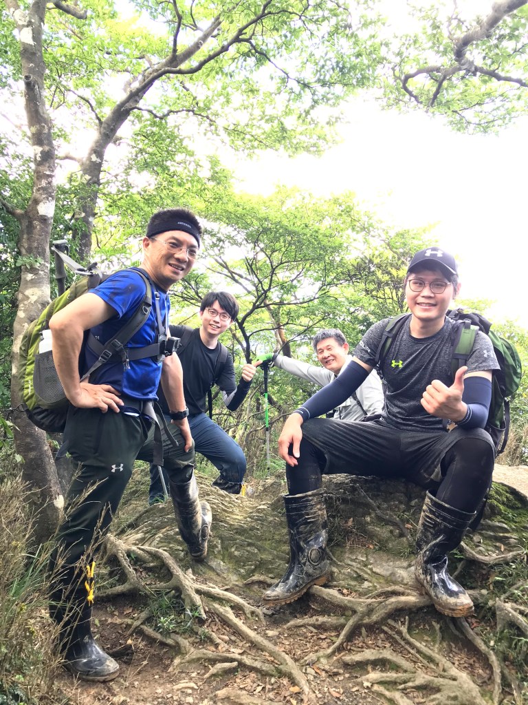 我們由停車場開始,途經赫威神木群、木屋遺址,到達北插天山,另多走多崖山。這部分的過程可以感受到Nick有累的感覺,David則是展現出體力驚人。回程時,在北插與木屋遺址這段一路陡下的過程裡,兩人則都有顯露出疲態,速度上就變得比較慢一些,此亦顯示耐力尚待提升,但此段路徑輕忽不得,不能求快而是需要安全,在岩石、泥濘黃土與樹根路上,謹慎是唯一選擇。吳大哥雖然年齡上稍長一些,但憑藉其過去的登山經驗,休息次數不多,速度上不疾不徐,反而展現出極佳耐力。