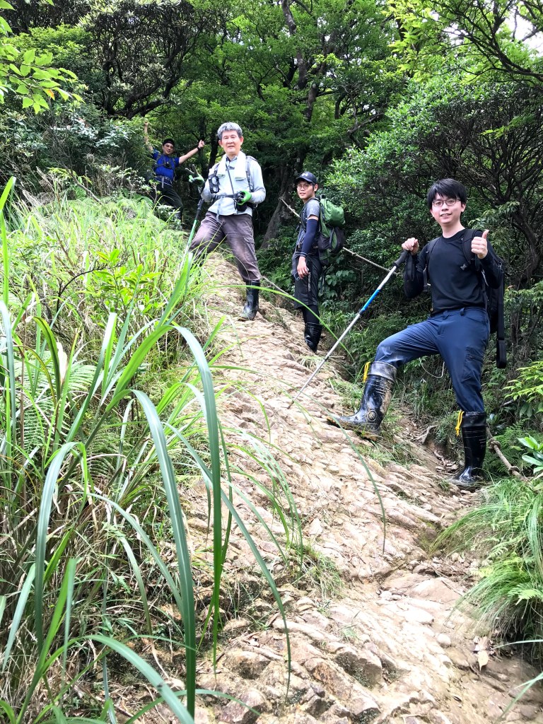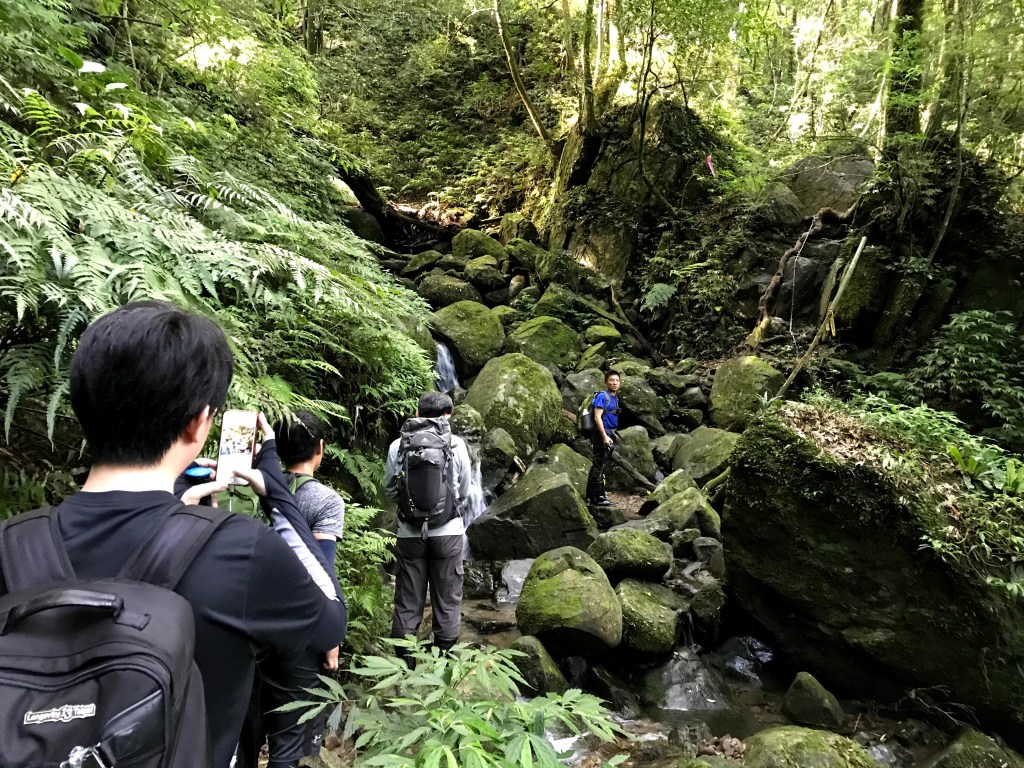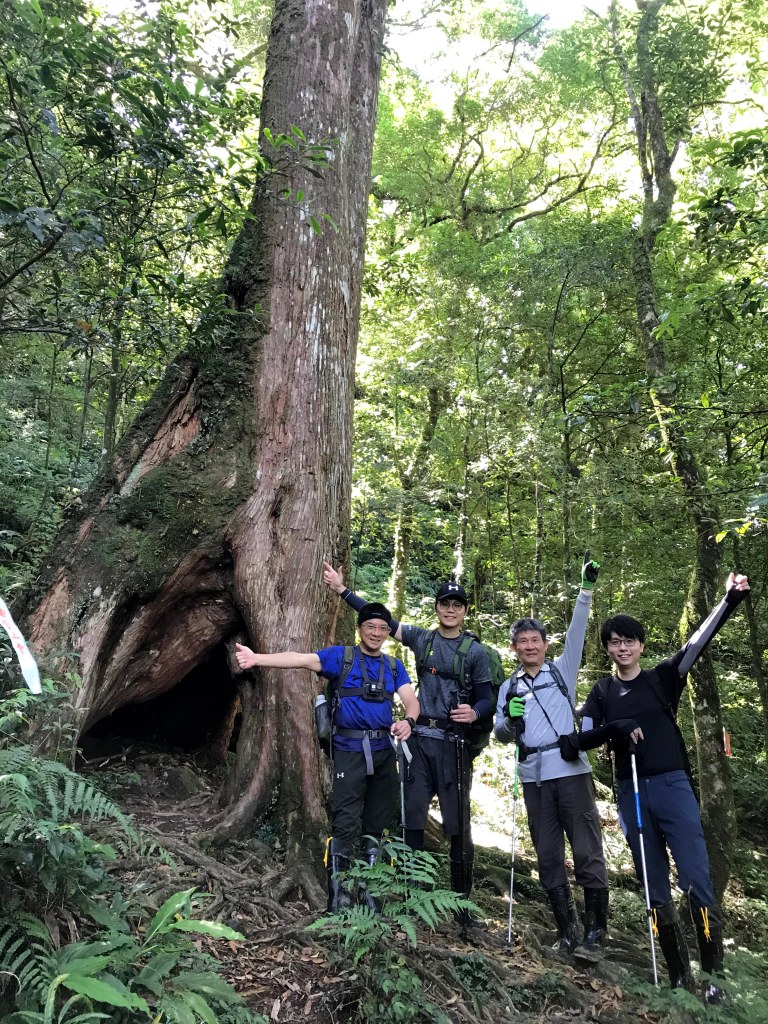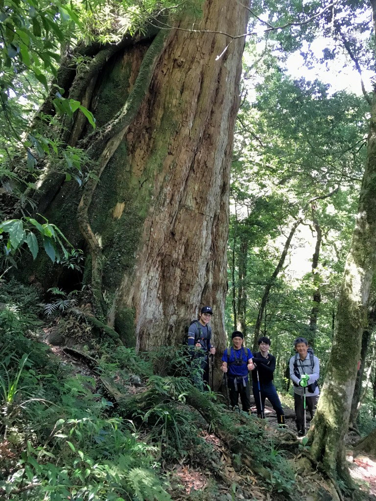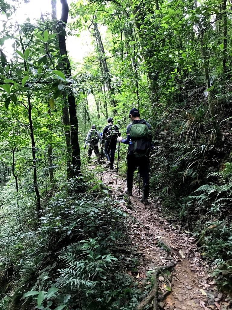 我們由停車場開始,途經赫威神木群、木屋遺址,到達北插天山,另多走多崖山。這部分的過程可以感受到Nick有累的感覺,David則是展現出體力驚人。回程時,在北插與木屋遺址這段一路陡下的過程裡,兩人則都有顯露出疲態,速度上就變得比較慢一些,此亦顯示耐力尚待提升,但此段路徑輕忽不得,不能求快而是需要安全,在岩石、泥濘黃土與樹根路上,謹慎是唯一選擇。吳大哥雖然年齡上稍長一些,但憑藉其過去的登山經驗,休息次數不多,速度上不疾不徐,反而展現出極佳耐力。