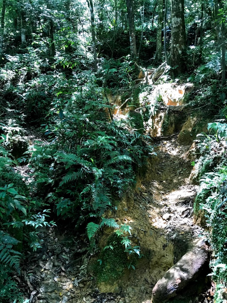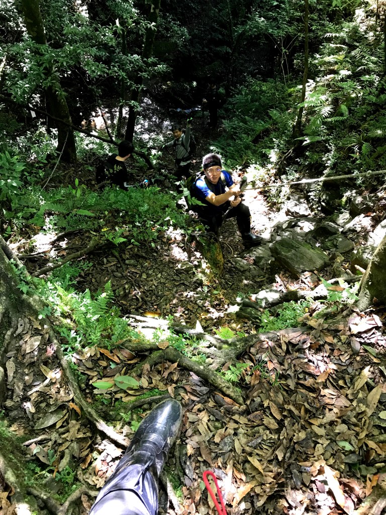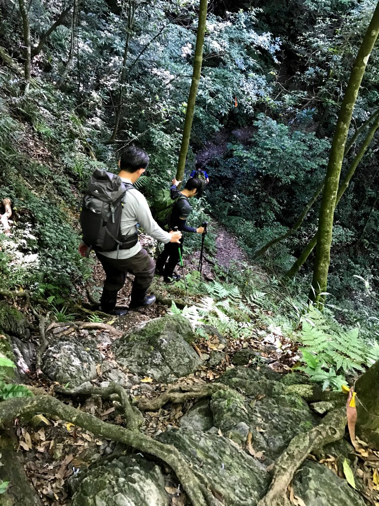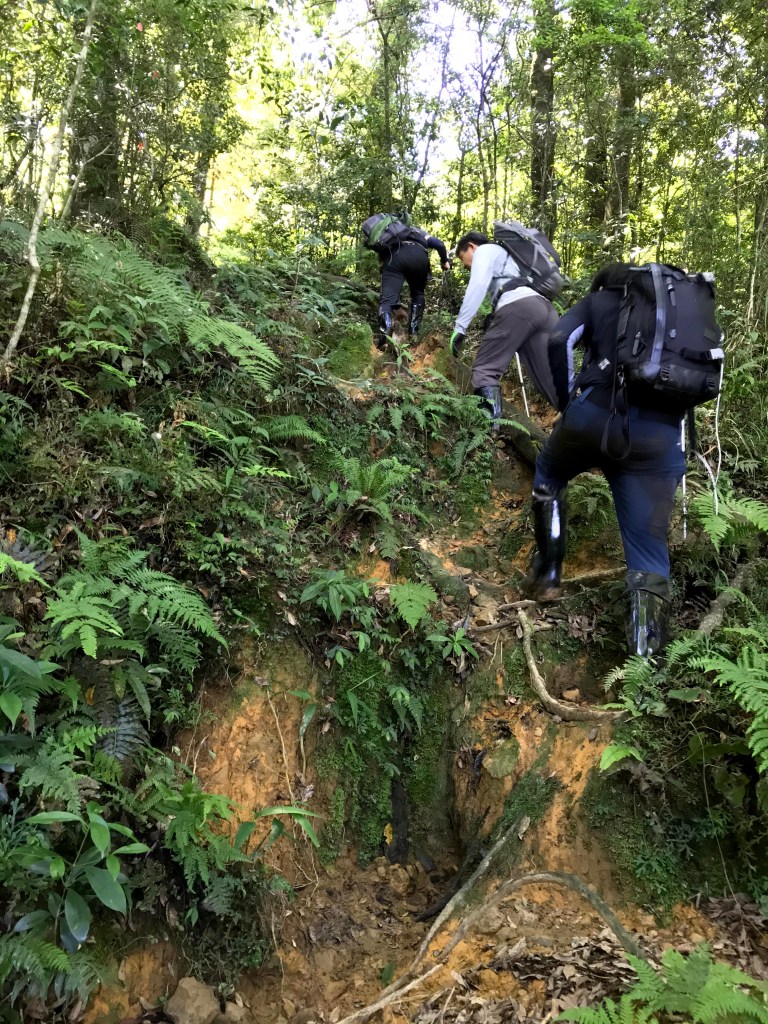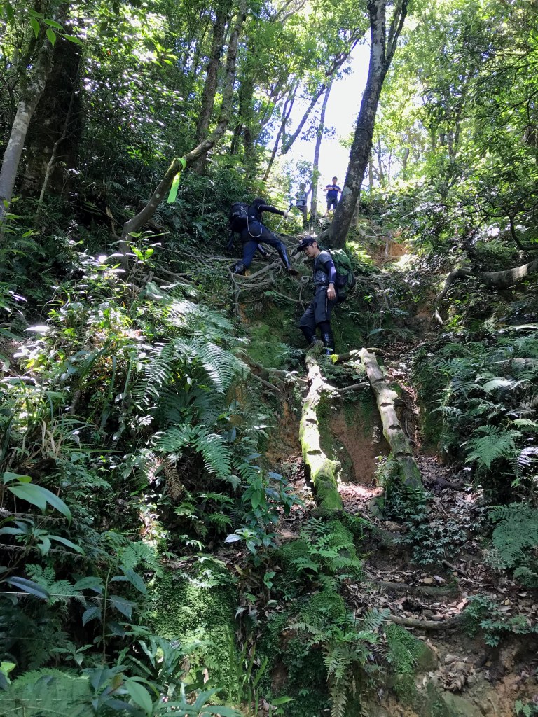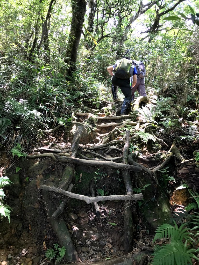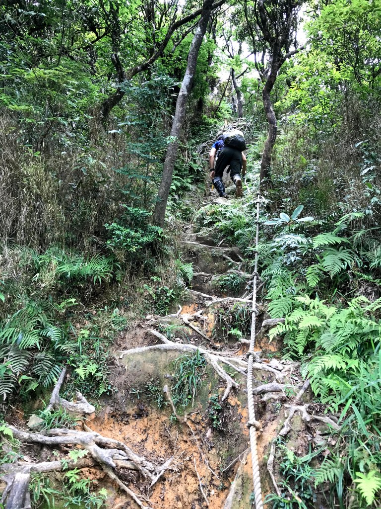上圖:追到了吳大哥與Nick。這段下山的過程中,Nick與David的速度變得慢了,也許第一次走中級山,時間已經比較久。但是我們不要求快,因為安全才最重要,尤其是在這段路上有一堆的樹根、岩壁。15:24