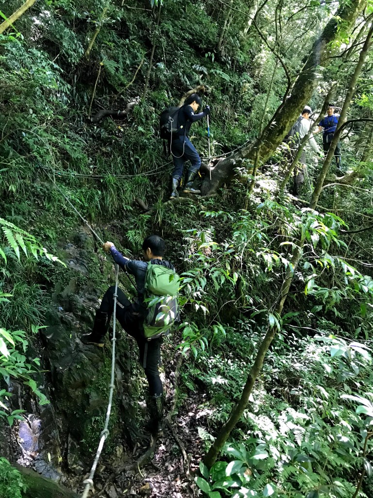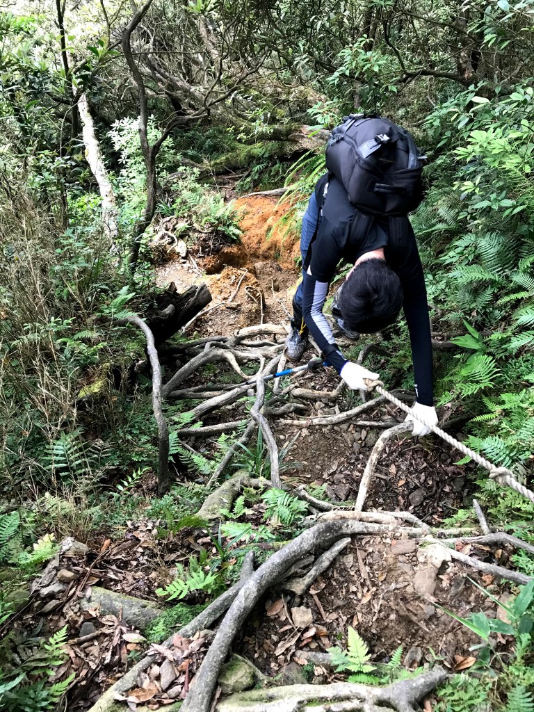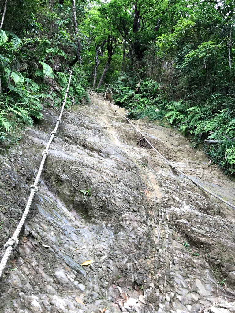 上圖:此段路徑不佳,有繩索輔助通過。08:46