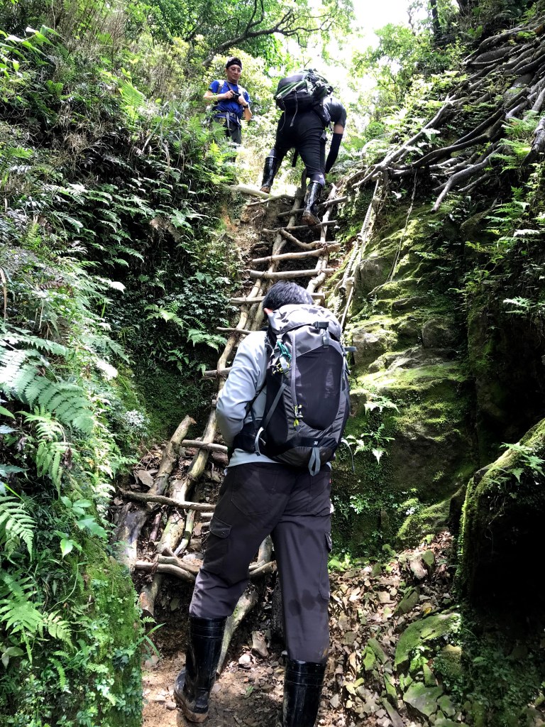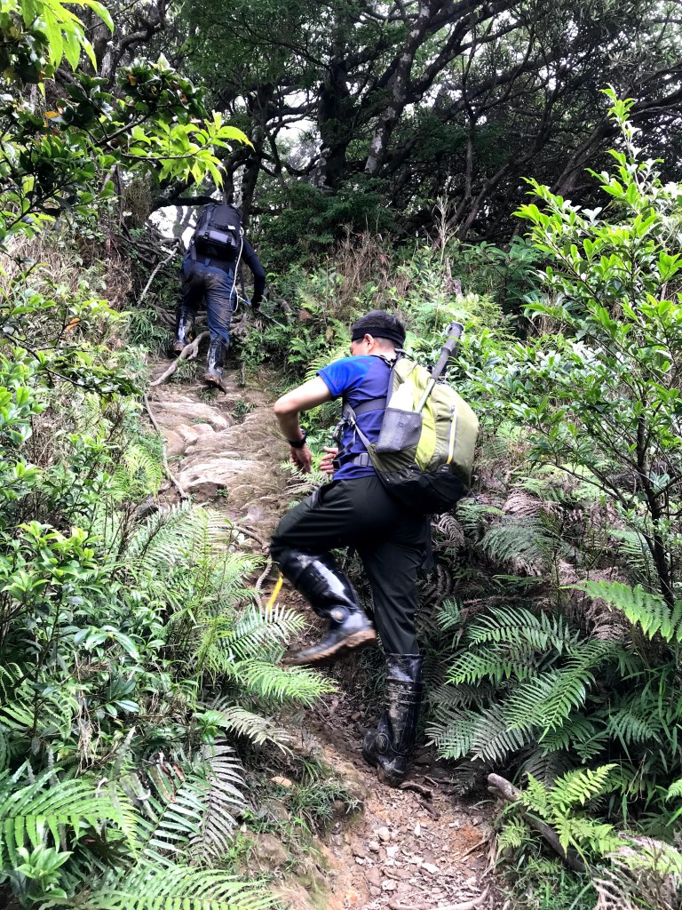 什麼山的名字這麼狂妄?插天!好像登頂就可以直達天聽!原來是其山形峻峭挺拔,又因為地處雲霧帶,每當山嵐湧起,如一倒插天際的樣貌,故得名「插天山」。沒想到,這兩年以來,Smile與我,含這次已經是第四次要攀爬北插天山。事前,吳大哥有聊過想去北插,我們亦可以感受到Nick與David對今天路線的期待與興奮,因為兩人特別去準備了背包、登山杖、雨衣等裝備。當然,水一定要帶足。