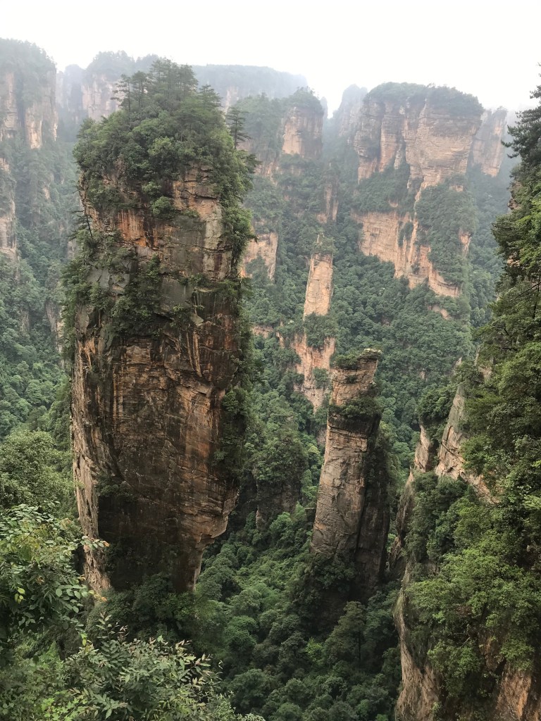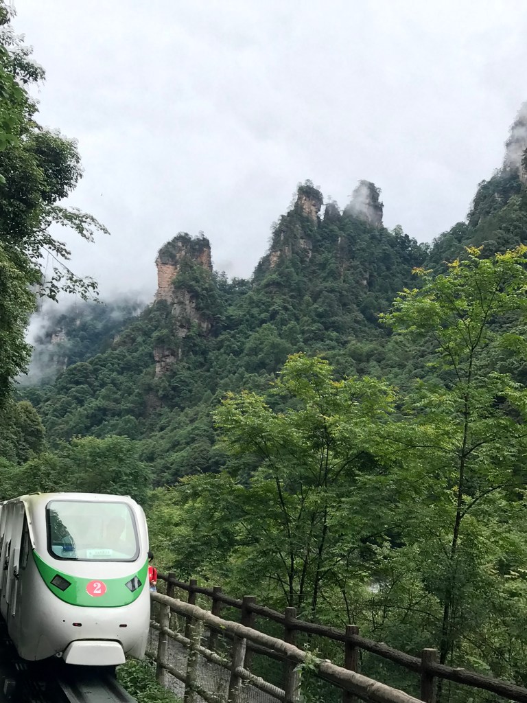 9點左右,開始出發往袁家界,今天天氣很好,看來會是照片滿滿的一天。先搭環保接駁車到百龍天梯入口,搭上後,直接上升海拔316公尺,再搭一段環保車到袁家界風景區入口。接著,就是走完這一圈最精華的風景區,也就是電影阿凡達漂浮山模型的取景區。其實,照片拍了不少,但是難以拍出他的氣勢磅礡,要真的身歷其境才行!