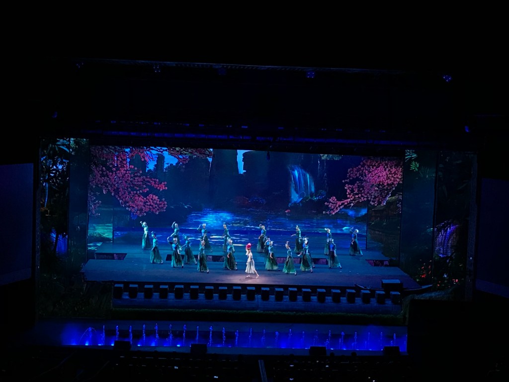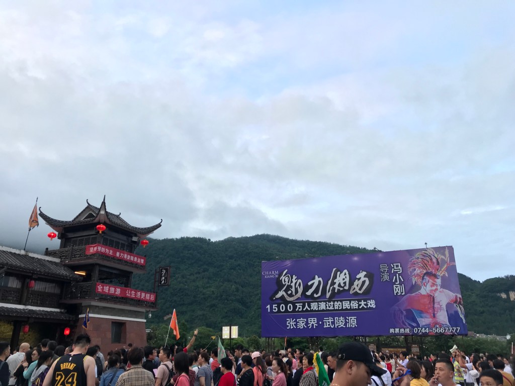 到了傍晚,來到了魅力湘西大劇院準備看秀!幾乎所有在武陵源的團體與個人都會進場,從晚上7點半一直到9點半,當你走出劇場時,會發現劇場外的廣場上,又開始另一段的胸口碎大石等其他的表演。等你回到飯店時,已經是晚上11點了。