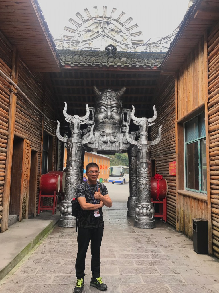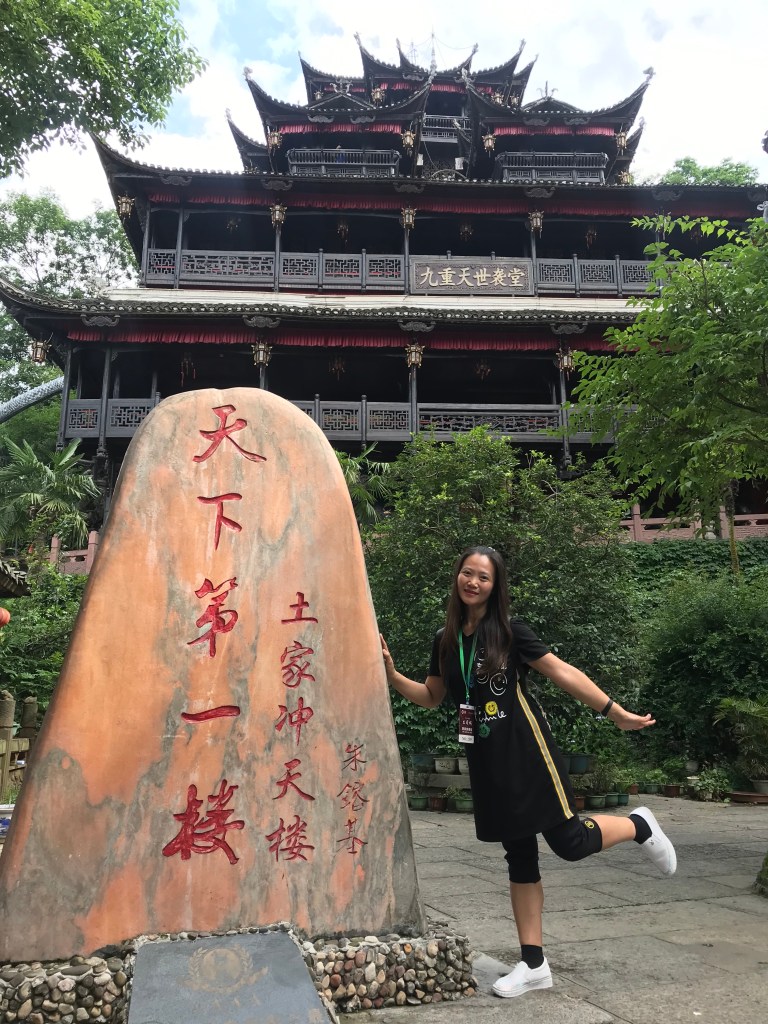 在這裡瀏覽到了下午1點多,才原路折返回武陵源吃午餐。接著搭車回到張家界市區,下午2點半左右,就去參觀土司城,每一團會給你套著同顏色的名牌,這樣服務人員就看得出來你是不是有落隊。可是進展的速度不快,老婆與我比較沒有耐性,就給他偷跑了一下,接著就是我倆自己遊玩拍照了。後來發現,早上也許走的累了,同團的團友,有一些也都自動落隊跑去休息。