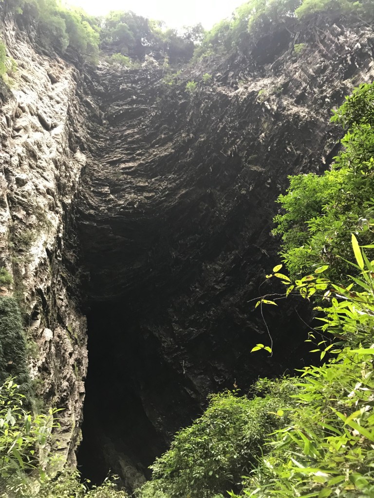 到達山頂後可以俯瞰天門山洞,一樣,氣候不佳整個山頭都是霧。往後行程中的玻璃棧道也都在霧中,無法居高臨下看到驚心動魄99彎的險峻,甚是可惜!