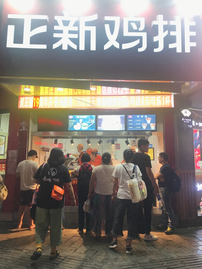到了下午約5點,大夥都回到市區的集合地點,準備往芙蓉鎮前進,這需要車程兩小時,也就是應該及時就出發吧?不是,拼團的缺點來了,還要等待其他行程的其他的人,要加入一起前往,因此拖到了下午6點左右,導遊要我們先吃晚餐再出發,一直到晚上7點才開車。無奈的等待。