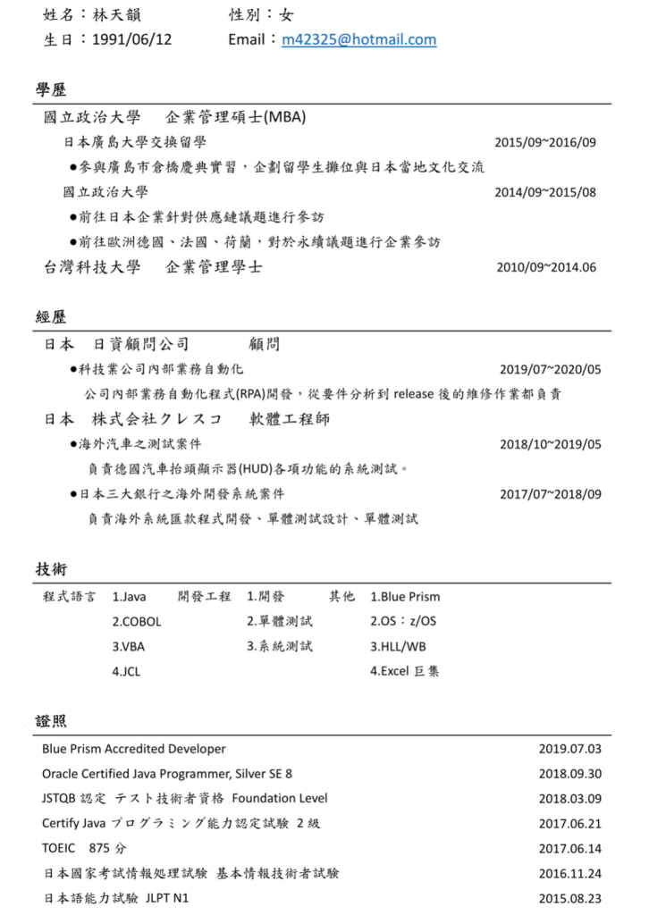 大學加研究所念了6年的企業管理,一夕之間我的第一份工作是軟體工程師。一頭霧水的我於是就再去問了我前輩我應該要準備甚麼東西。以下給有興趣來日本當初階軟體工程師的人參考,已經很厲害的人如果對高度人才簽證(下面寫轉職的時候會寫得更詳細)沒興趣的話這個內容可以跳過。