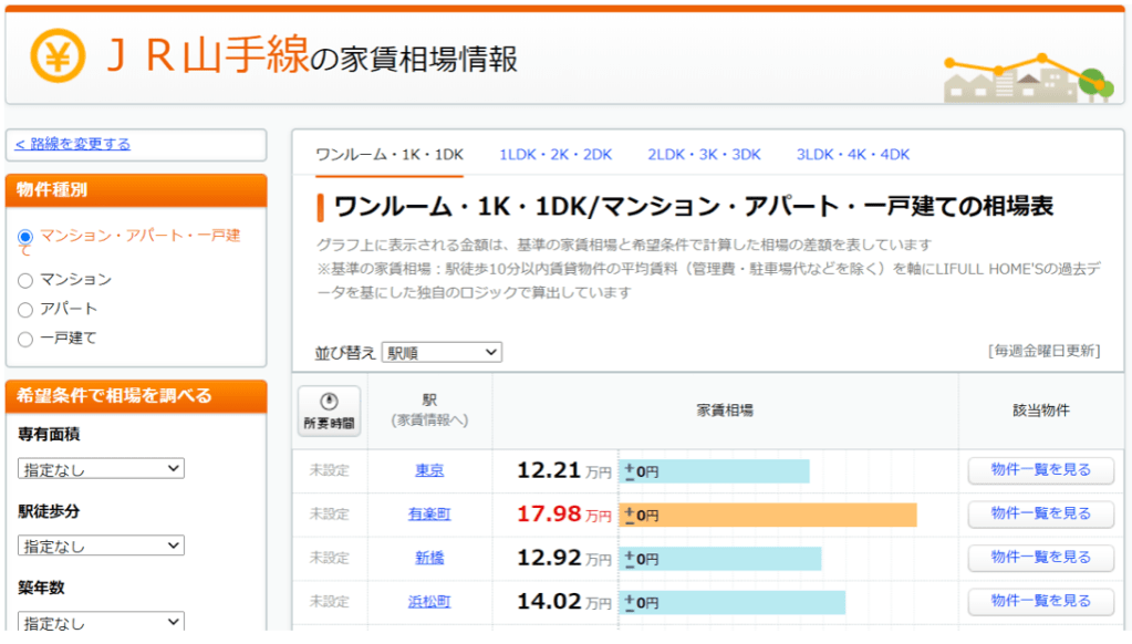 大家熟知的東京23區,山手線圈住的範圍,基本上都貴到爆,除非你真的不在乎金額,不然想要維持一般人生活水準的話找房子不要找這個區域。山手線內的房租屋齡不超過30年的套房,車站走路10分鐘以內,坪數約4~5坪,一個月房租大概在8~12萬日幣。
