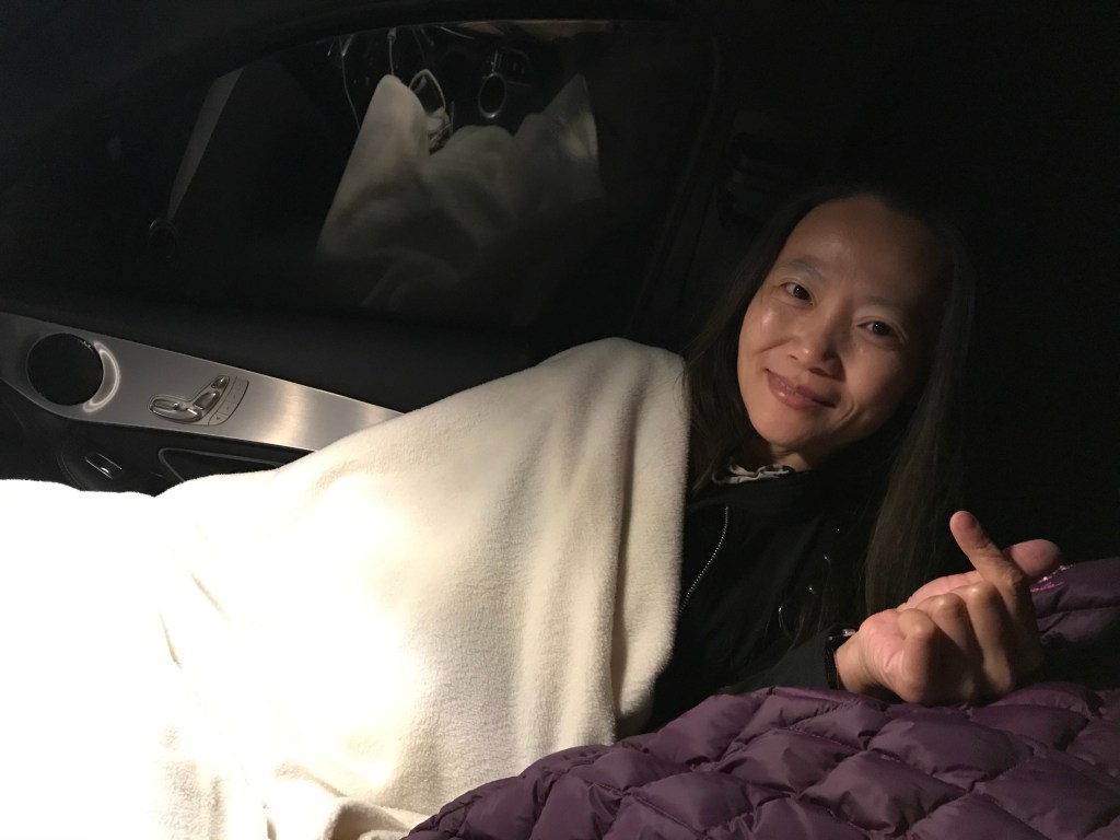 從停車場開車回台北約需要三個多小時,Smile一直說要陪我。結果強壯的Elmer,還有倔強的Smile,都撐不過15分鐘,一個睡得不省人事,一個睡得磕頭如搗蒜,留我一人,在寂靜的暗夜裡,聽著我愛的西洋音樂,伴隨著Google的導航聲,駕馭著小白開了3個多小時回到台北。