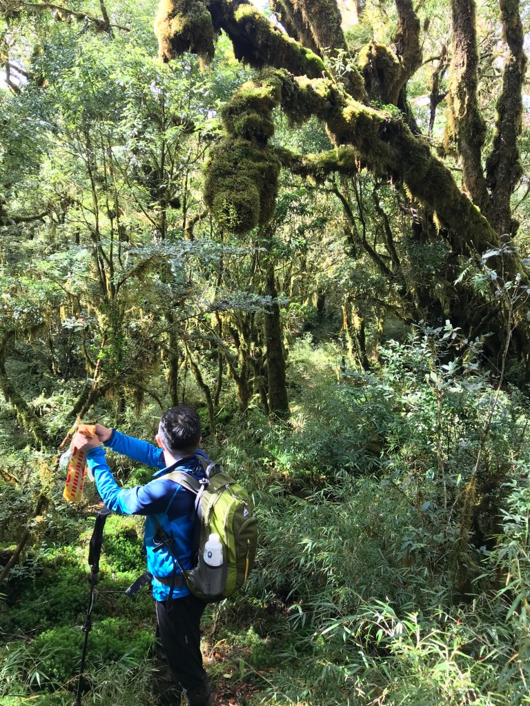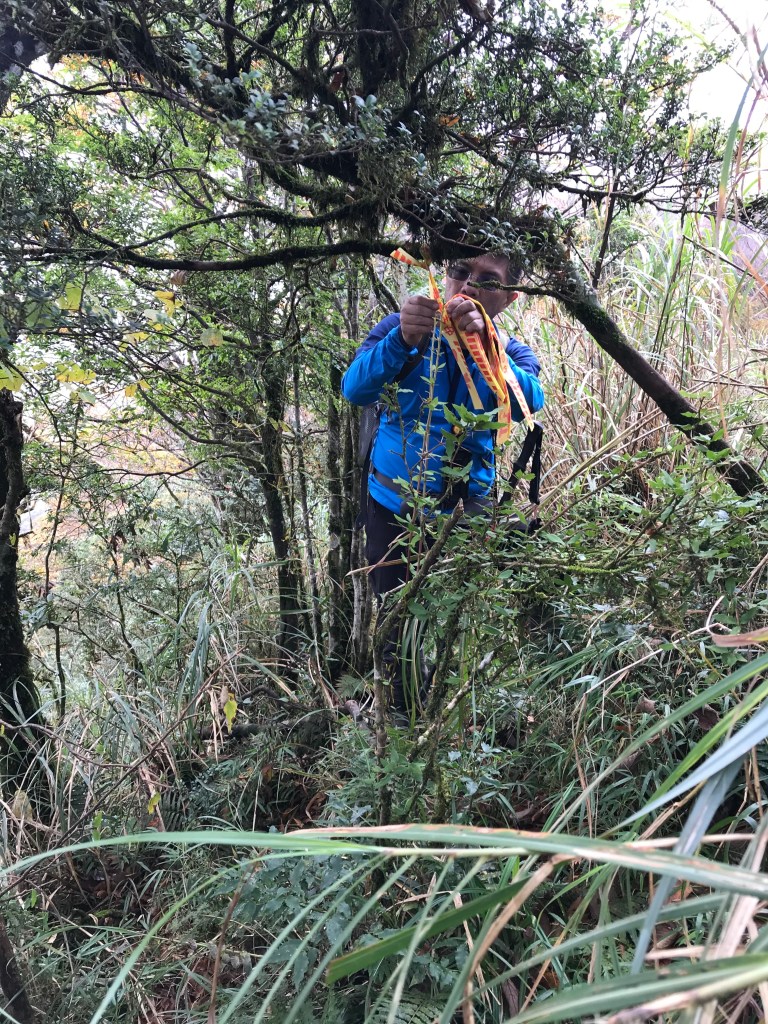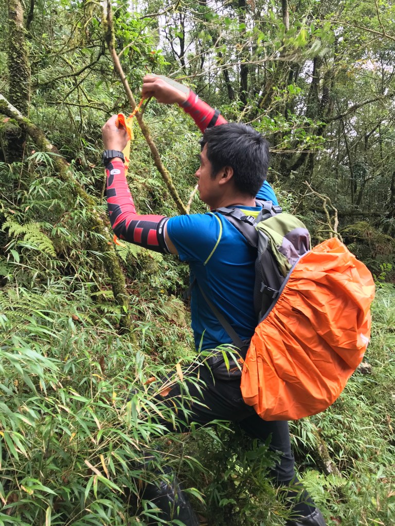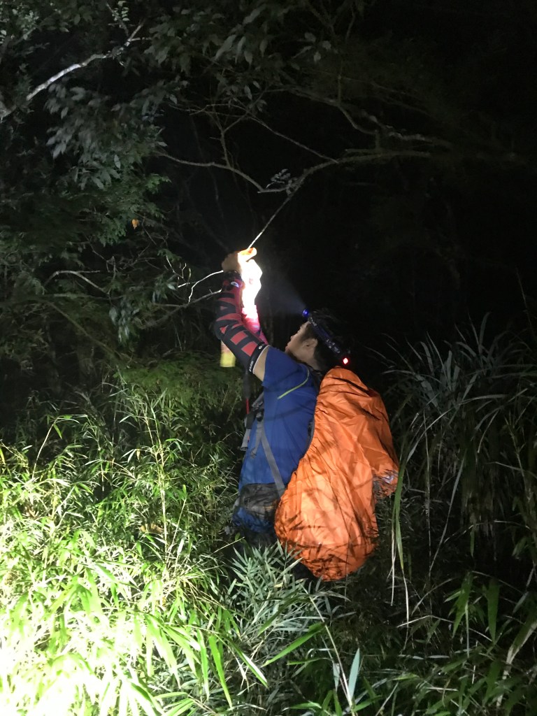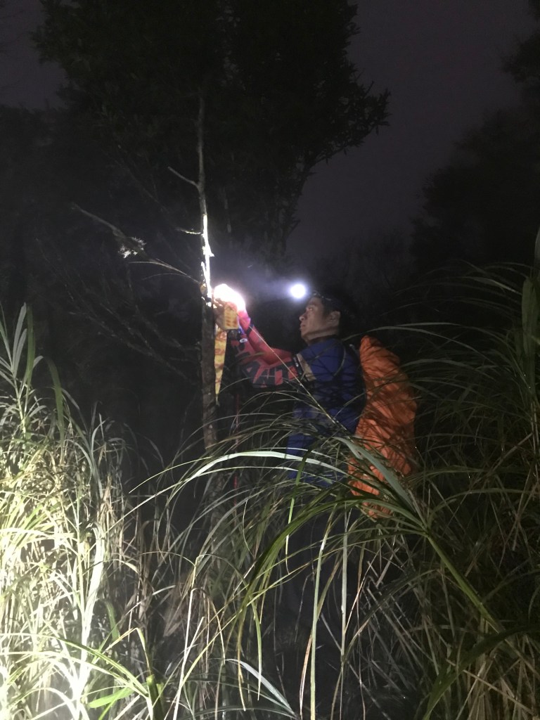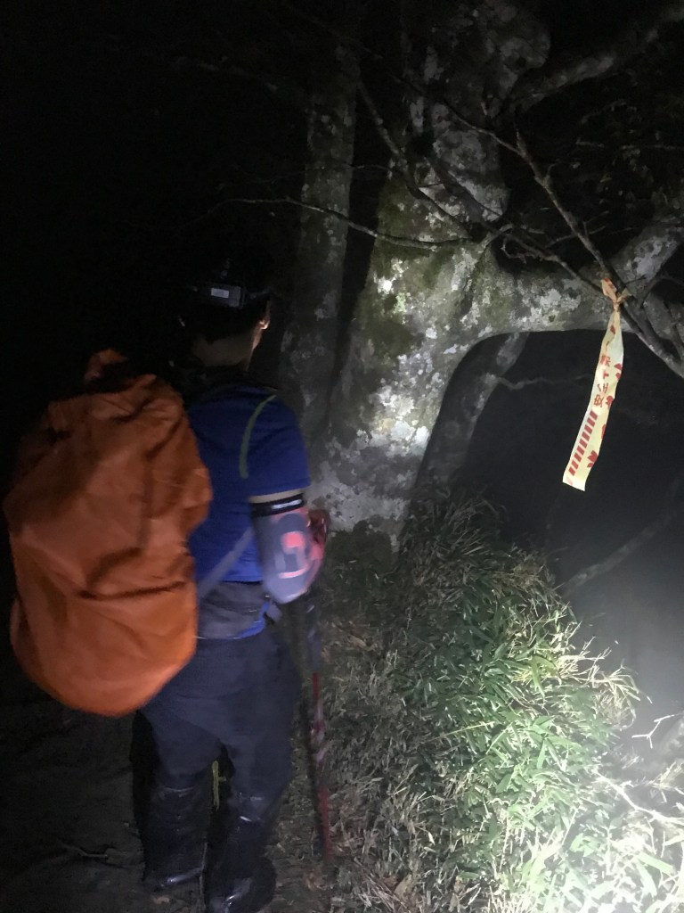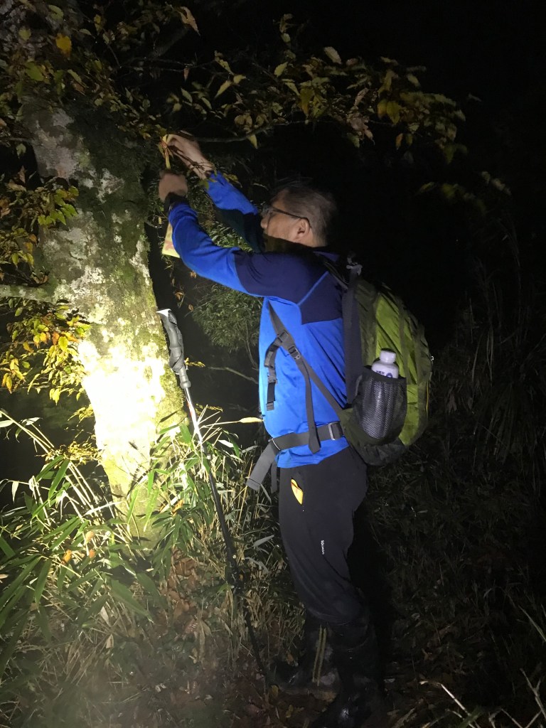 我們準備了約300條布條,幾乎用完,但也因為做這些動作,讓我們犧牲了很多時間,光綁布條,就可能多花了一個多小時。回程時雖然摸黑,但是卻可以很明確的知道路徑,頓時內心覺得很開心。