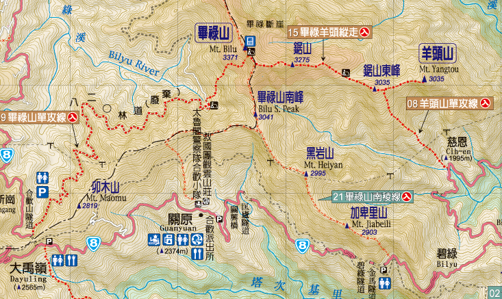 上圖:由太魯閣國家公園所提供的畢羊縱走路線圖。