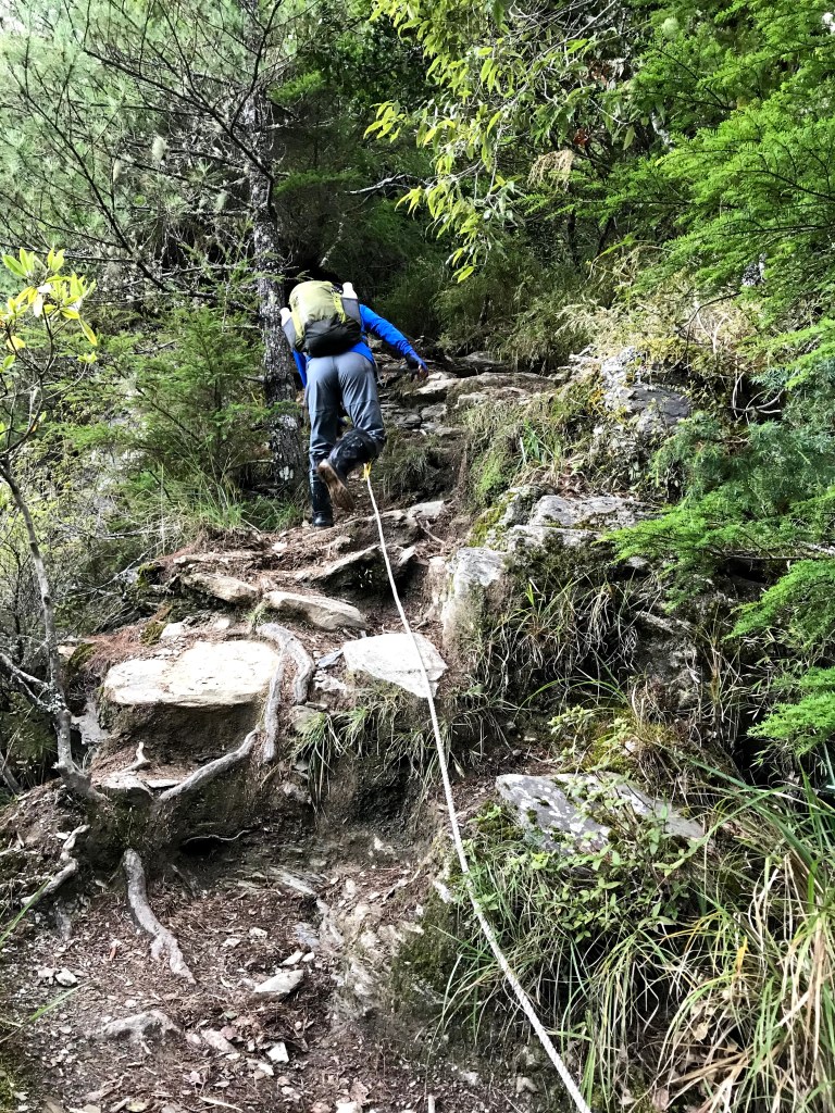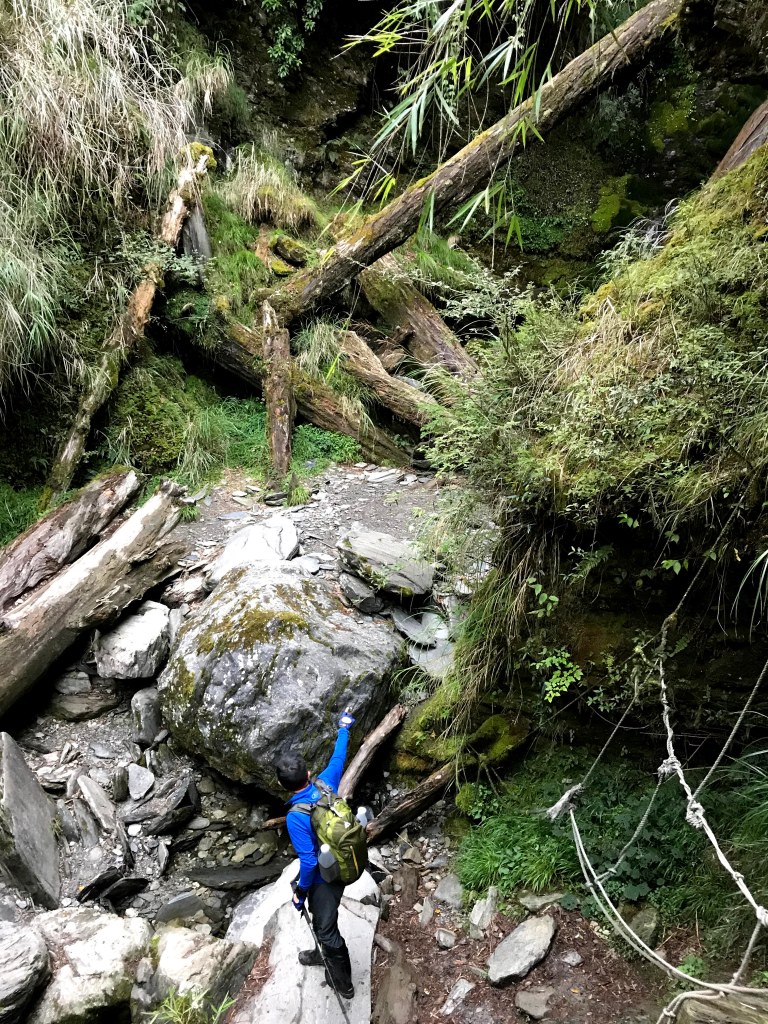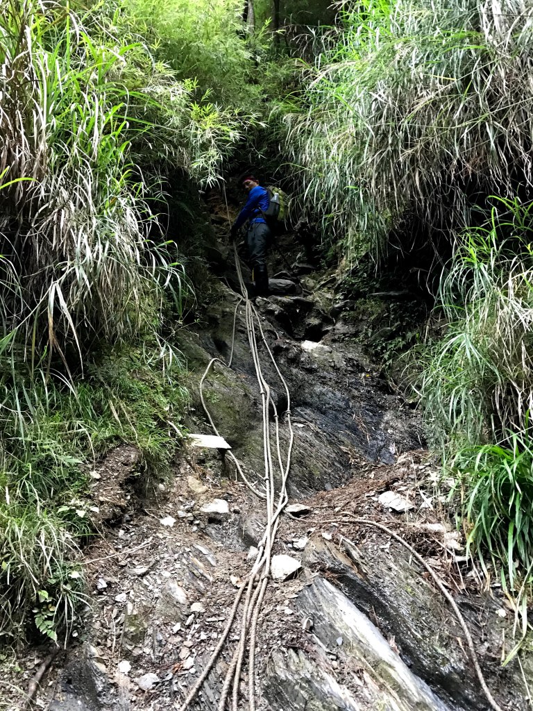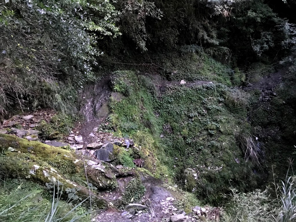 上圖:行走過程的左側是斜坡,路徑比較狹窄,有繩索可以輔助。
