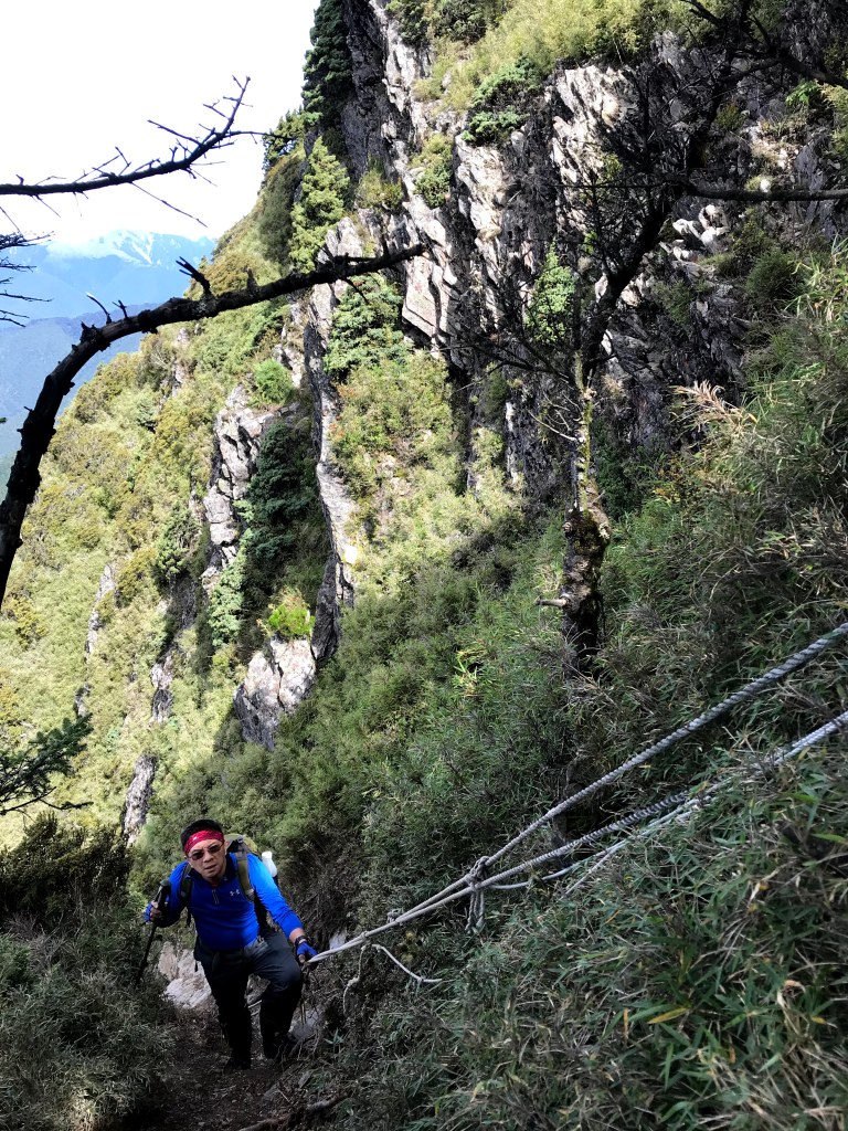 影片:此段的腰繞路,旁邊是斷崖,要小心拉繩而行。13:26