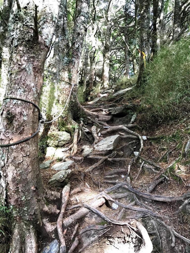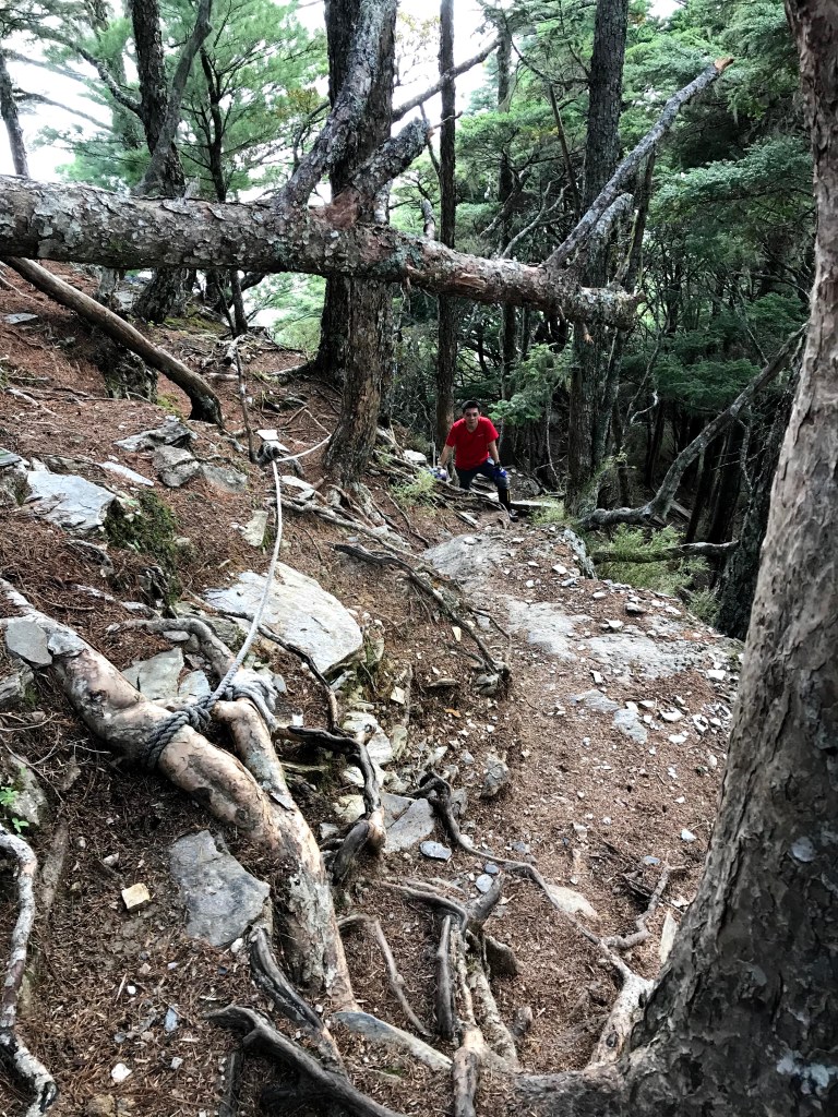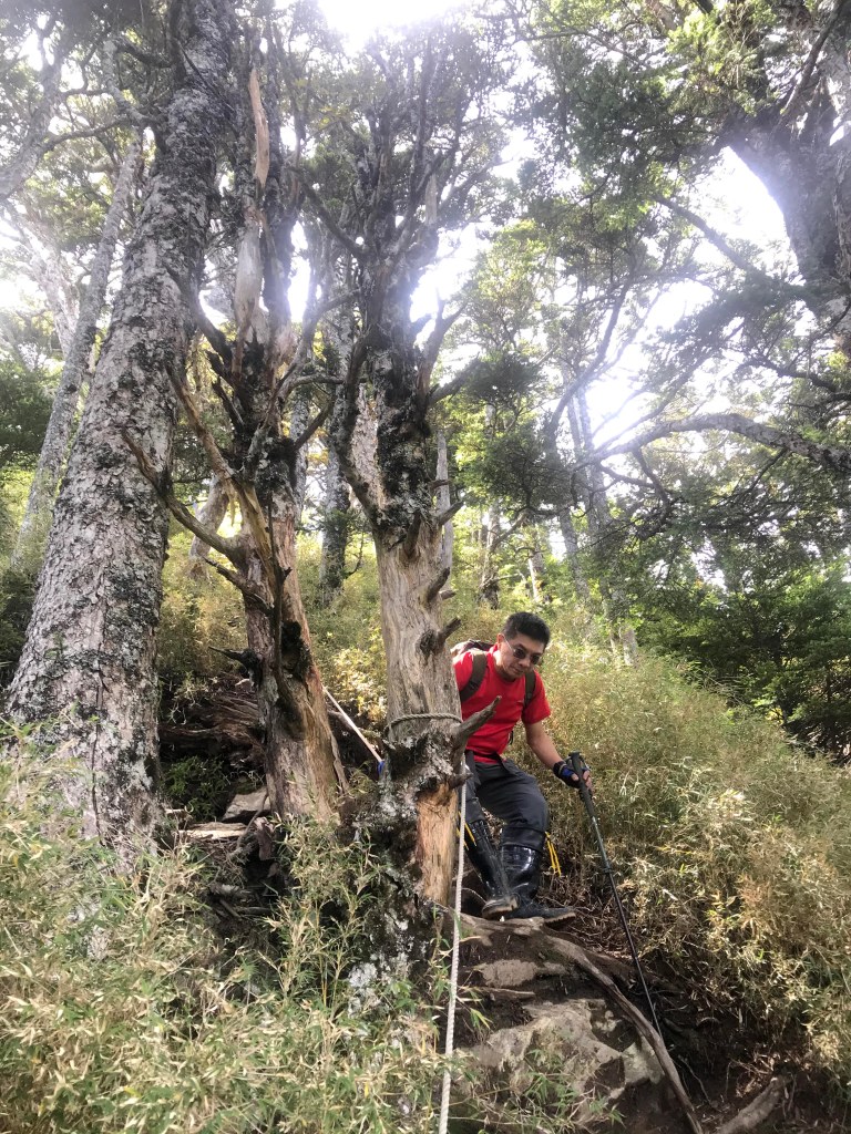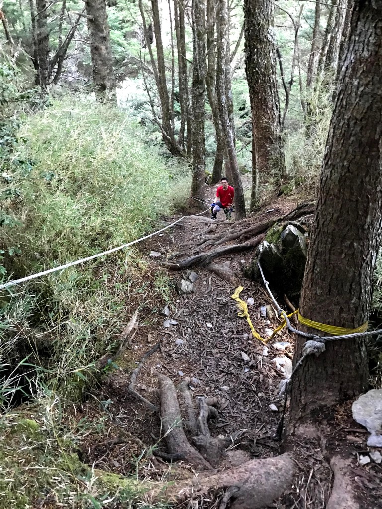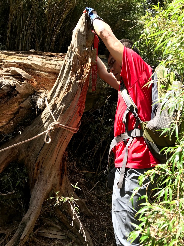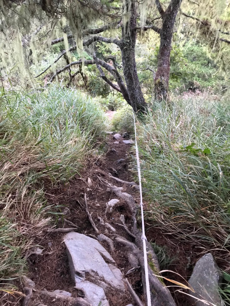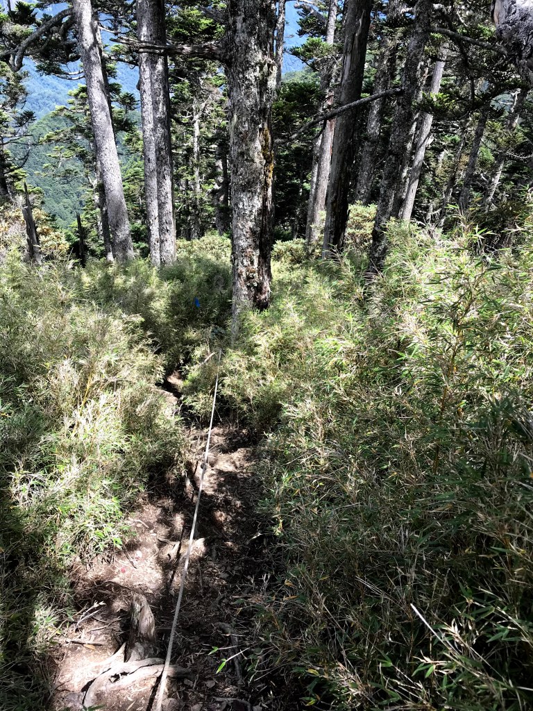 影片:由3.4K開始一路上因為箭竹林過高,沿路上都有綁上繩索,有利於登山者確定方向。感謝綁繩養護的山友。15:02