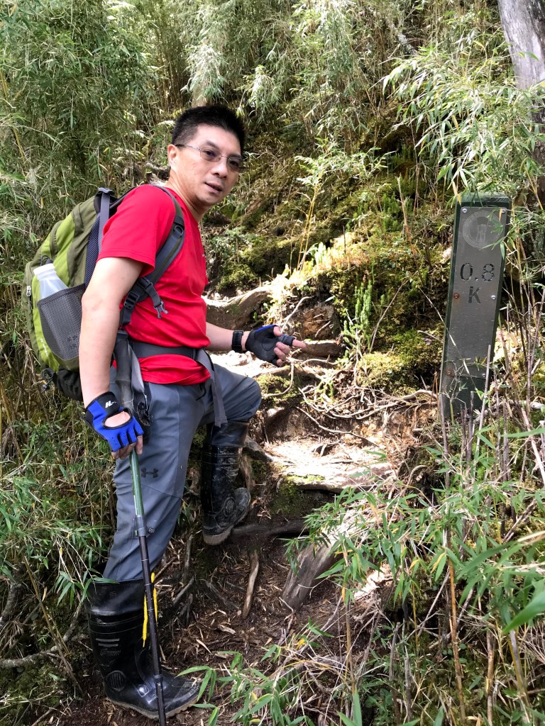 上圖:每隔100m就會有路程立牌。圖中,我們已經走到820林道1.0K。過了1.0K後一小段路徑會轉而向左彎,我們在此走錯了一小段,折回確定要左彎而繼續前進。04:13