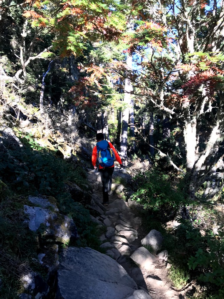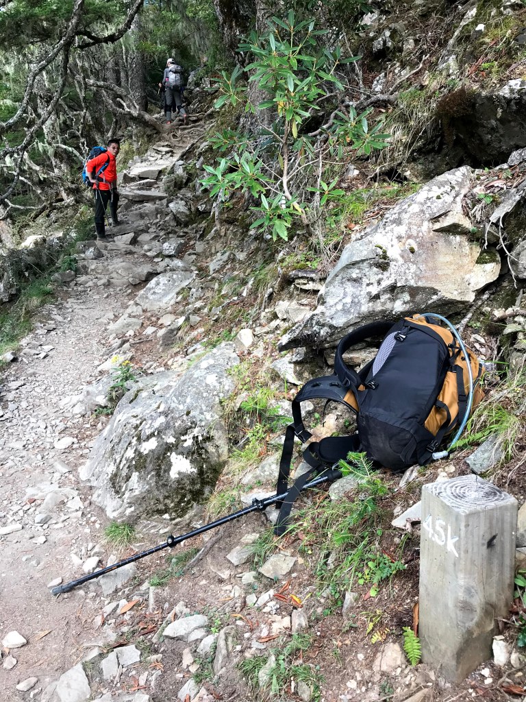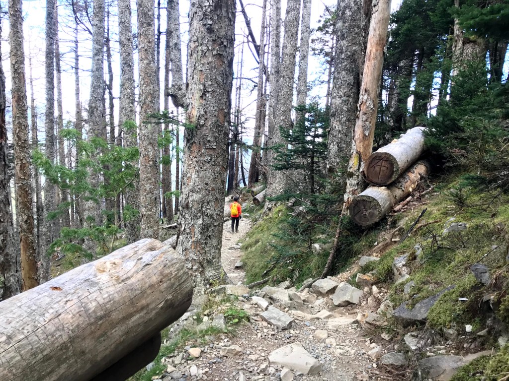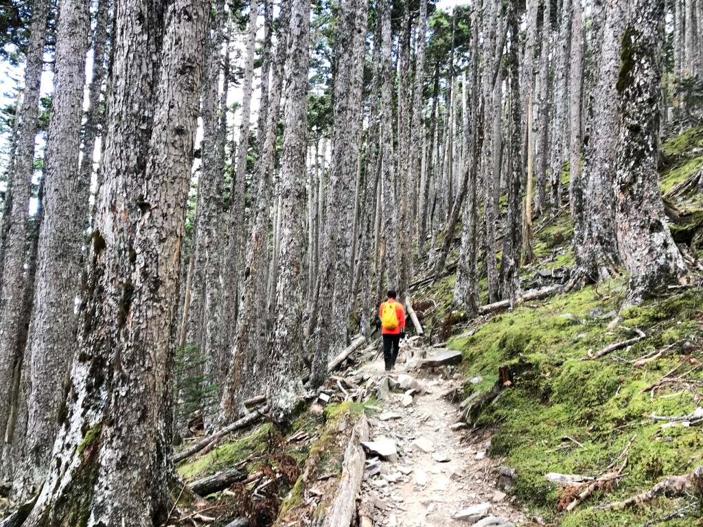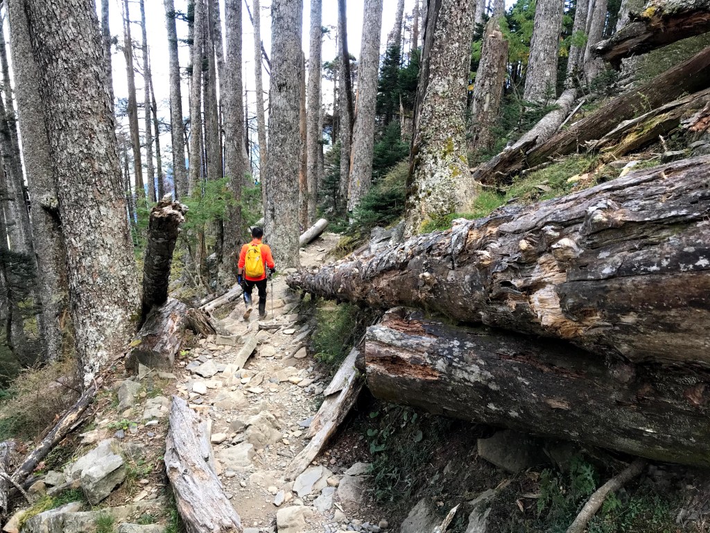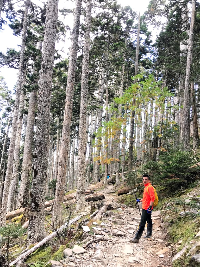 另外,Elvis在雪山登頂時,也有反應有頭痛的現象,因此,拍完照後Elvis就先行下山,然後我們在黑森林中追上他並一起同行,期間有休息多次,過了觀景台後,Elvis覺得症狀有緩解,因此一直到回到登山口這一段,可以感受到他的速度就變得快了不少。