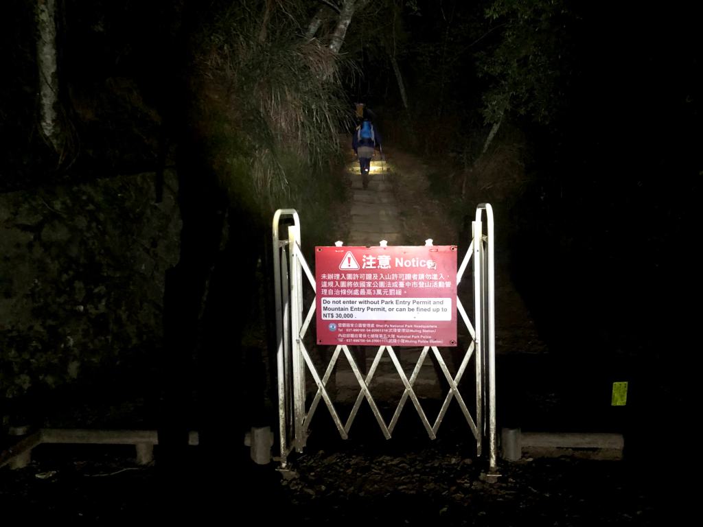 上圖:起登後的鐵柵門,上面要山友們注意,需要辦理入園證才能進入。