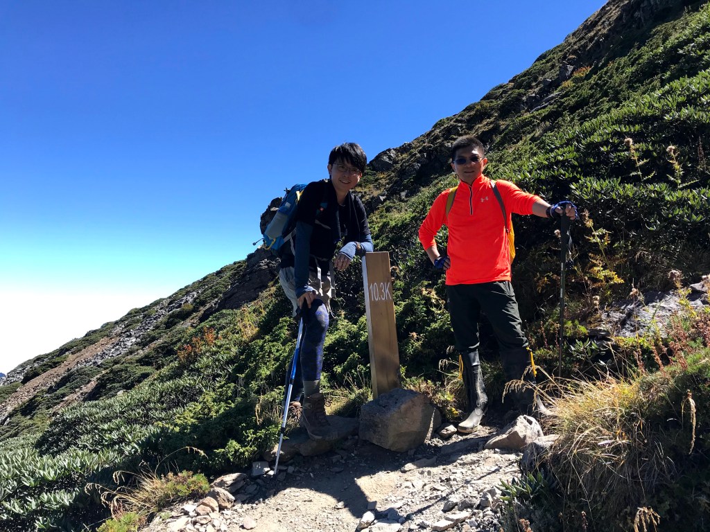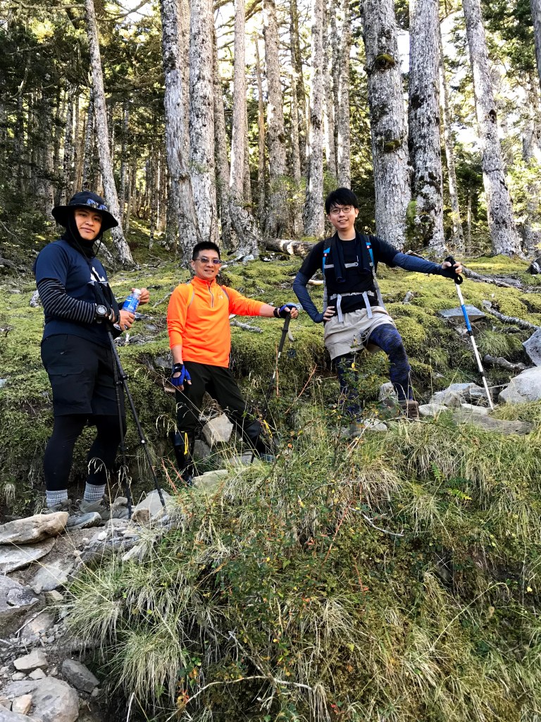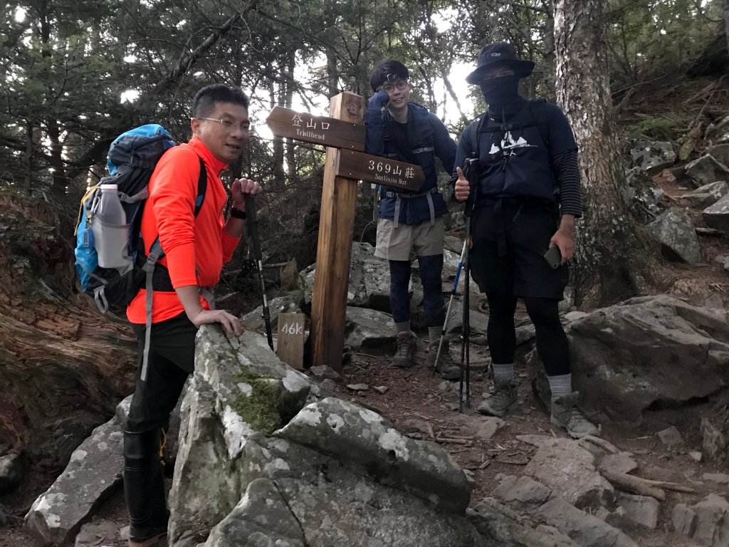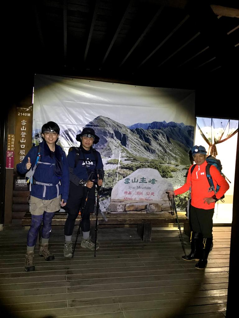 Smile、Elvis、David與我Gosen,今天完成了重要里程碑!過去一年,每次只要安排雪山單攻當天總是天候不佳,今天,終於讓我們完成的夢想中的里程。美中不足之處,就是我有帶國旗,但是在三六九山莊改為輕裝攻頂時,忘記拿了出來。