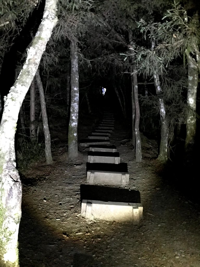 上圖:在雪山登山口服務站,將我們的入園證給投遞於信箱內。準備起登!03:05