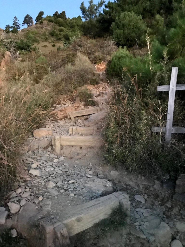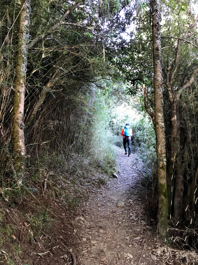上圖:這段稜線約走上100m後,就來到此往下坡的路口。05:49