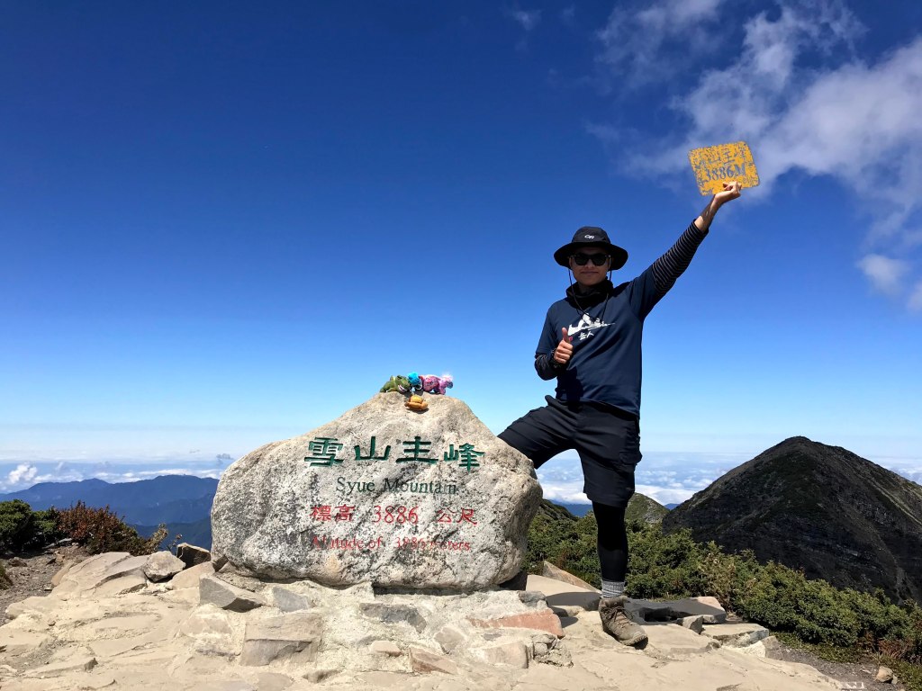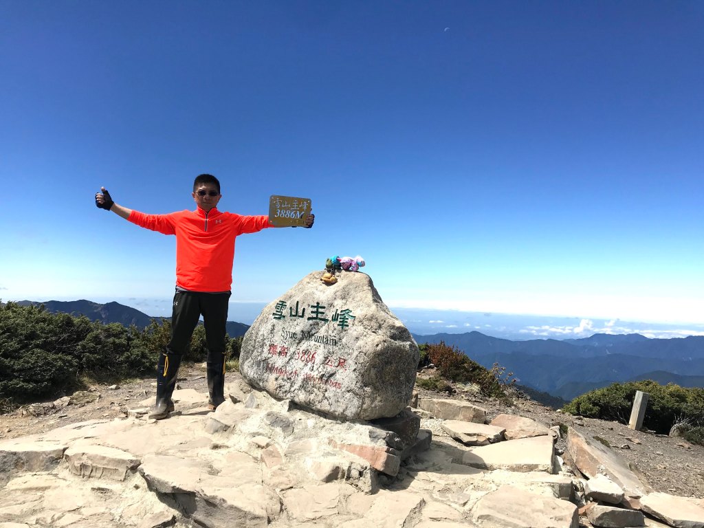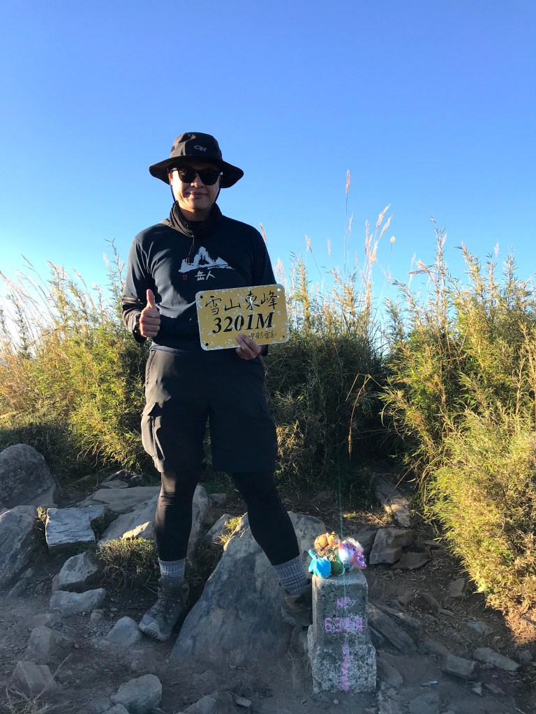 今天,是David人生的第一座與第二座百岳,當他踏上雪山主峰的當下,居然不知不覺的流下眼淚,不僅感情豐富且亦愛鄉愛土。所以,David哭了,是因為感動;我也哭了,是因為我的國旗在三六九。