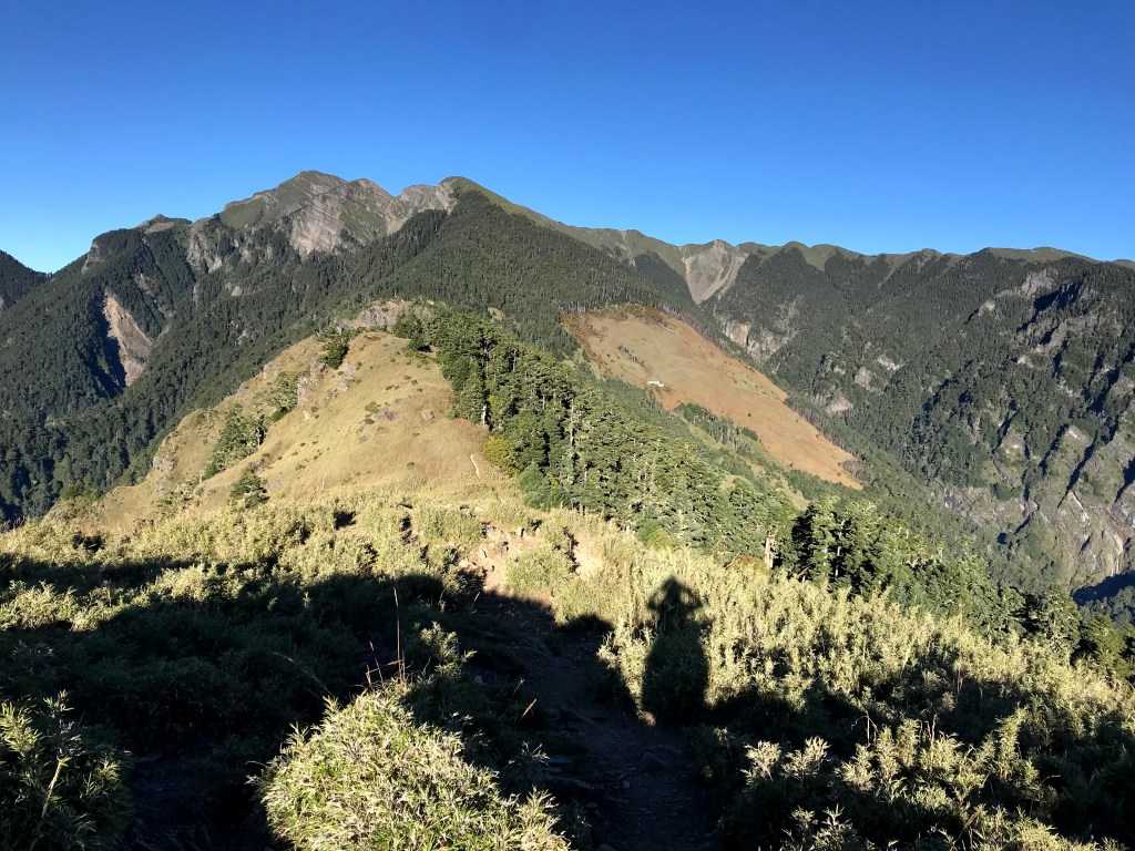 上圖:登頂前,可以看到前方的雪山南峰與志佳陽大山。