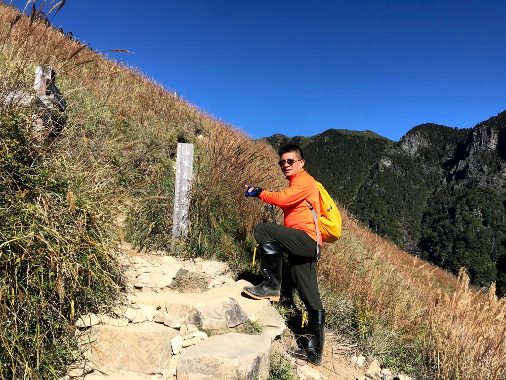 上圖:David的第二座百岳!伴隨著右側的聖稜線與大霸尖山!