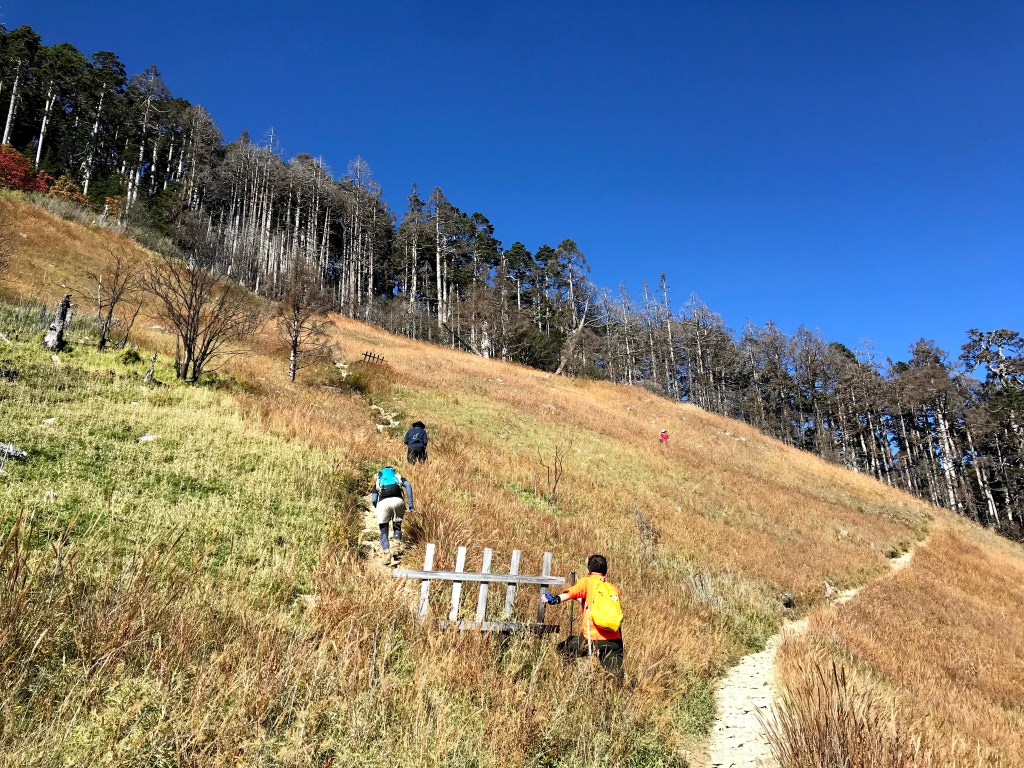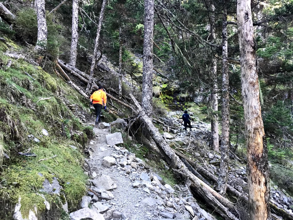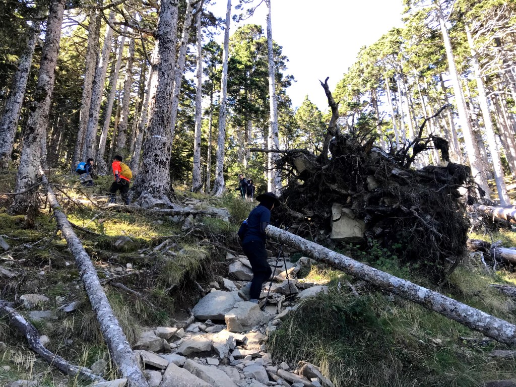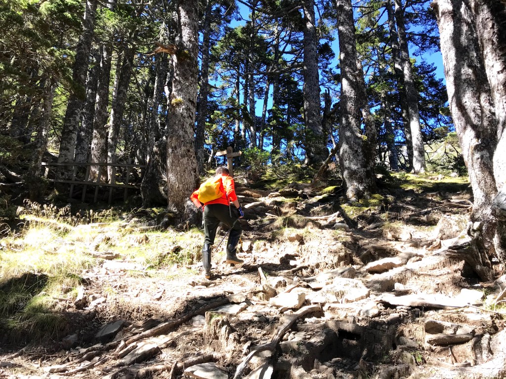 1. Micky您好,過369山莊後到進黑森林之間的大草原區,路徑是之字形的陡上,但您會看到有好幾段的木版圍住,因為這些路徑已經變成截彎取直的捷徑!我們的夥伴也不知不覺就走上去,但是我個人是走傳統的之字形,為了GPS的完整。我猜啦,這些捷徑應該被走了幾十年了,下山的時候,大半的山友都是走捷徑下來。