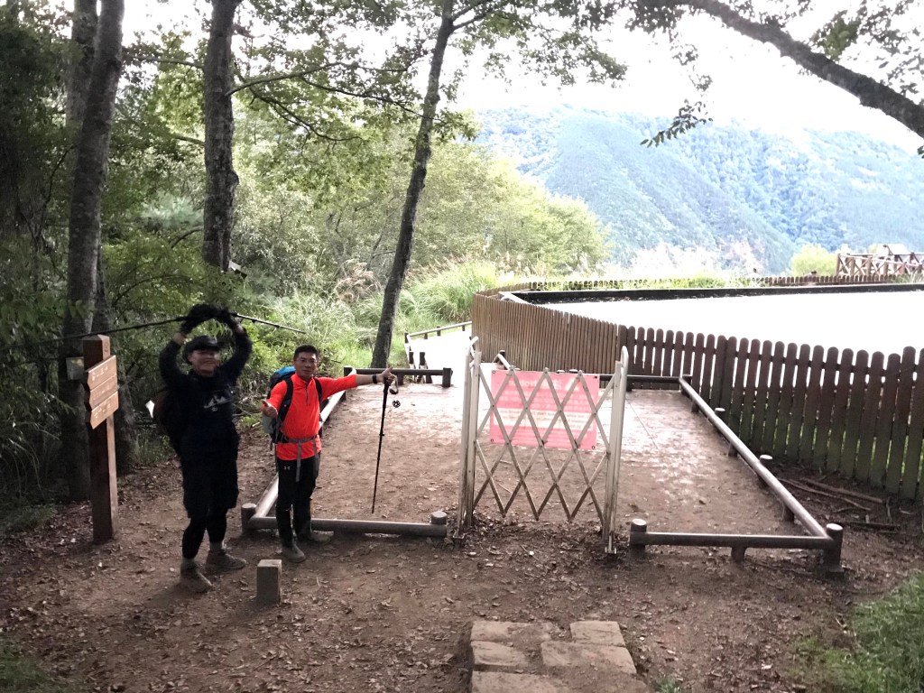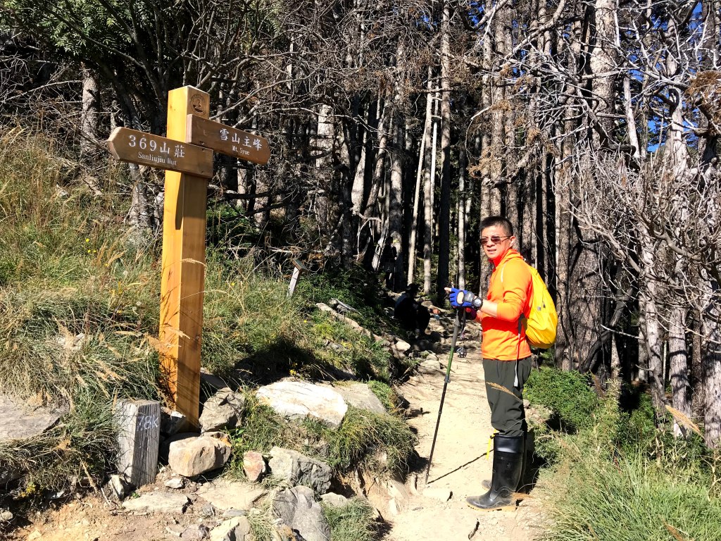 上圖:我與三六九山莊合影,並取回原裝備,準備下山。David與Elvis在此不做休息,直接下山。14:22
