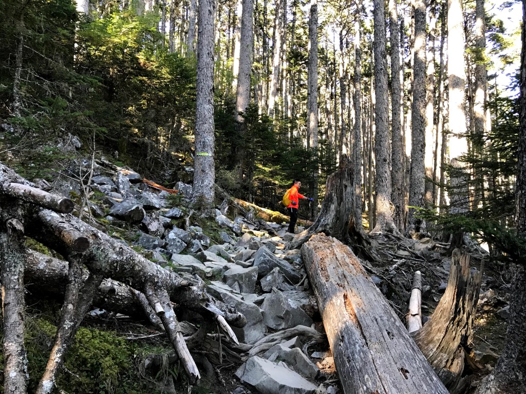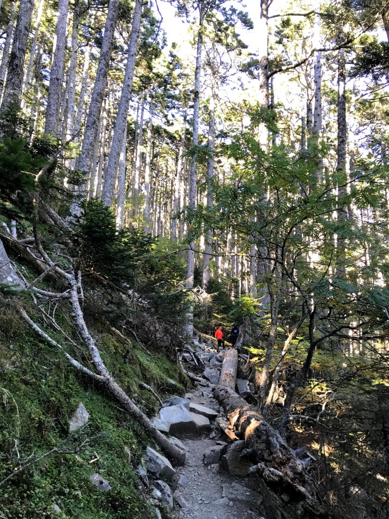 上圖:當你走到周遭都是玉山圓柏時,就該恭喜自己,我們要親臨雪山頂!